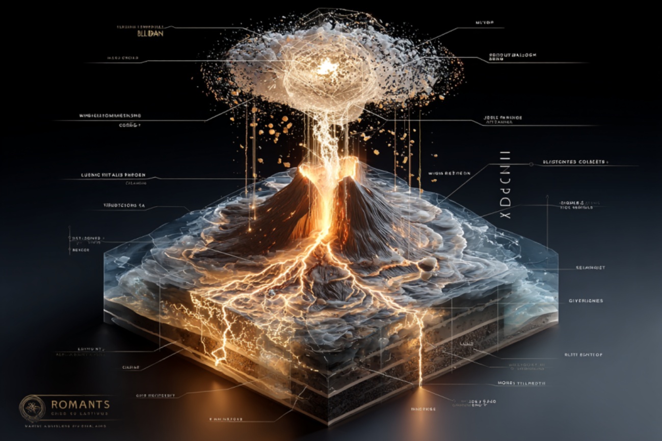 Figure 2. Volcanic eruption image optimized by GPT-4o: Introducing geological stratification and structural elements.