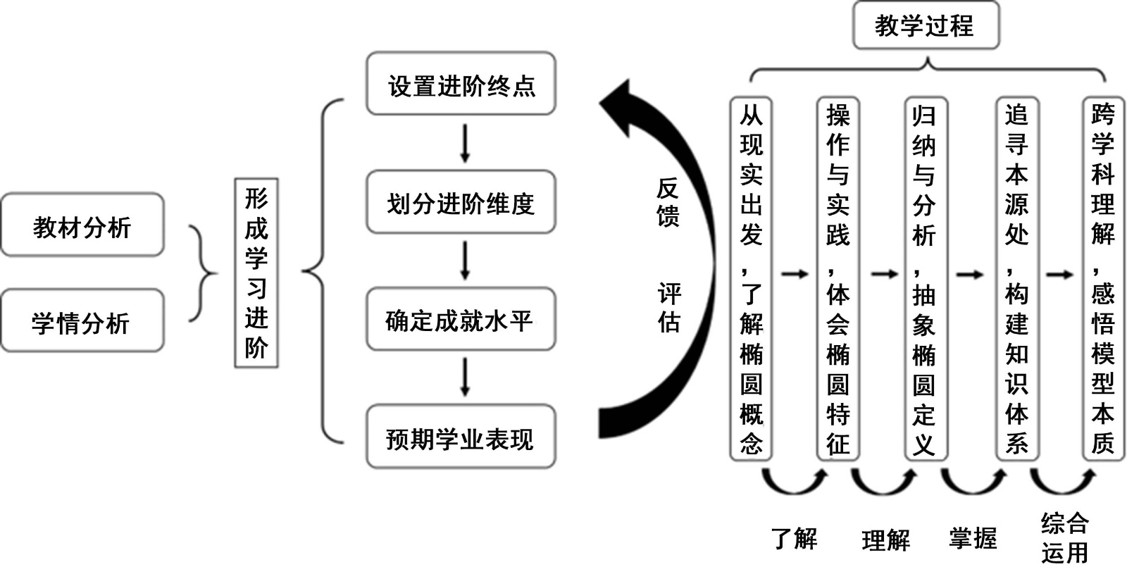 图1. 基于学习进阶的“椭圆的定义”教学模型