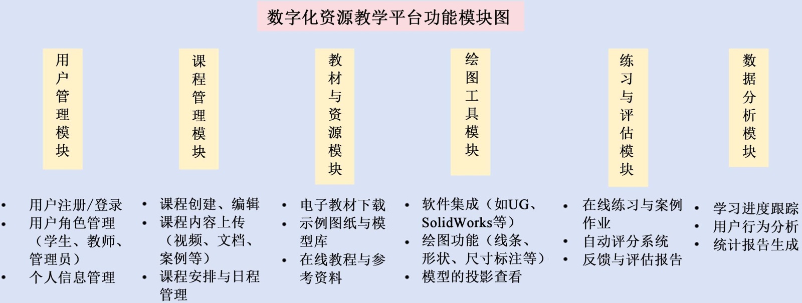 图1. 典型的数字化资源教学平台功能模块