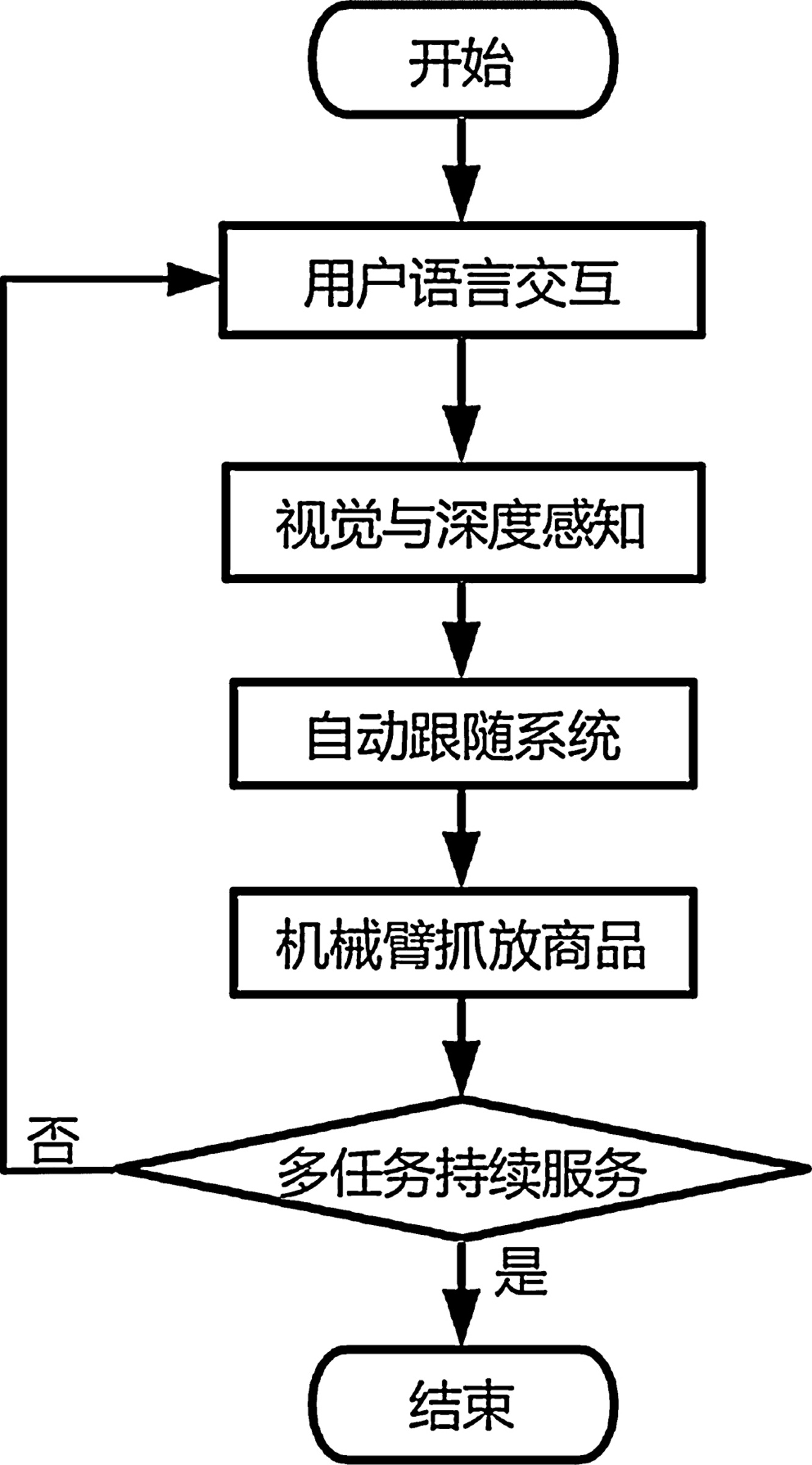 总之就是,系统以语音交互为入口,视觉与深度感知为纽带,导航与机械臂为执行载体,形成“听、看、走、做”的全流程智能化闭环(见图5),大幅提升超市购物的便捷性与趣味性,为用户带来更好的体验,让用户走出互联网,又身在互联网。
