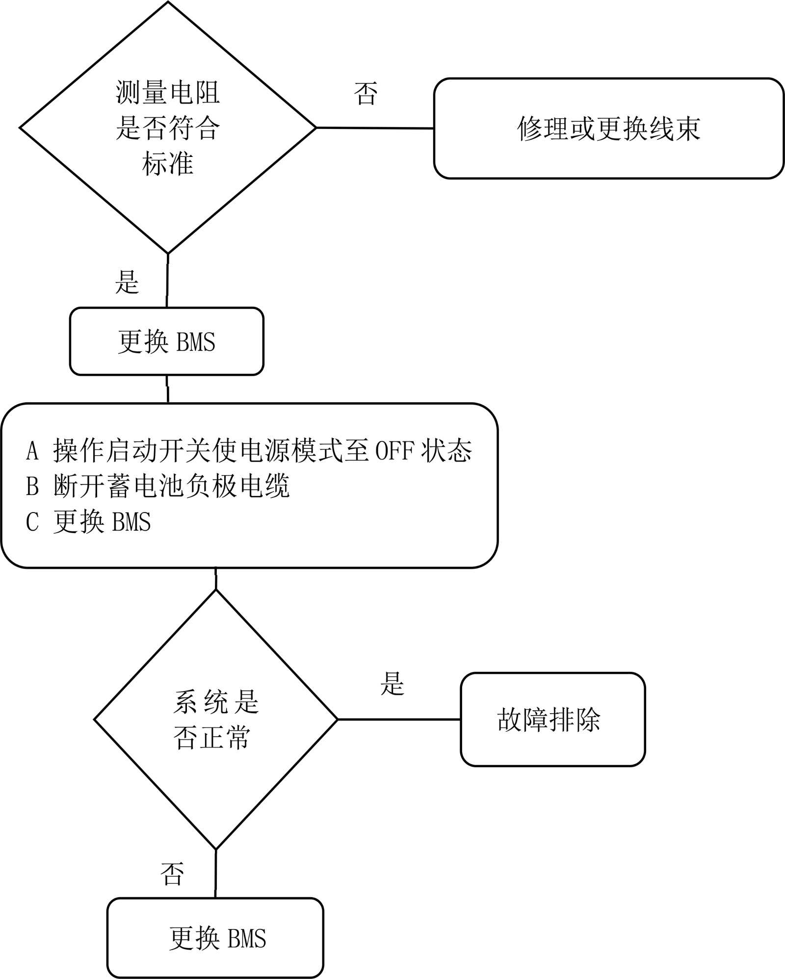3) 系统检测:a) 总线检测:用总线分析仪测P-CAN通讯状态,排查短路、断路或信号干扰;d) 高压开关检测:测量关键开关触点通断与端子连接质量,排除预充相关故障;c) 线束与端子检测:万用表测通断及绝缘状态,重点排查老化磨损问题;d) 模块与传感器检测:上述正常时,查BMS模块、传感器工作状态及数据流;
