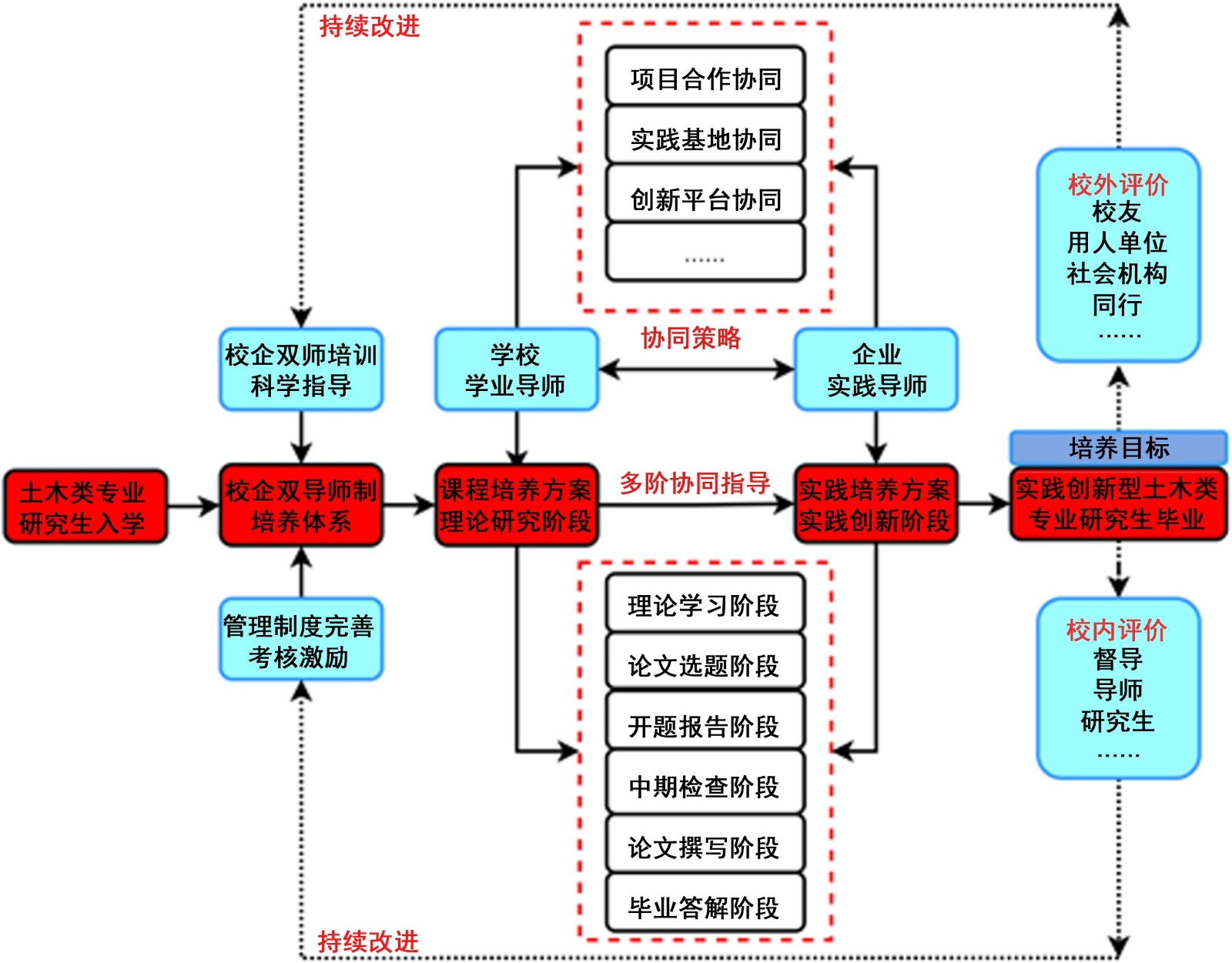 图2. “校企双师”协同培养土木类专业研究生体系与路径