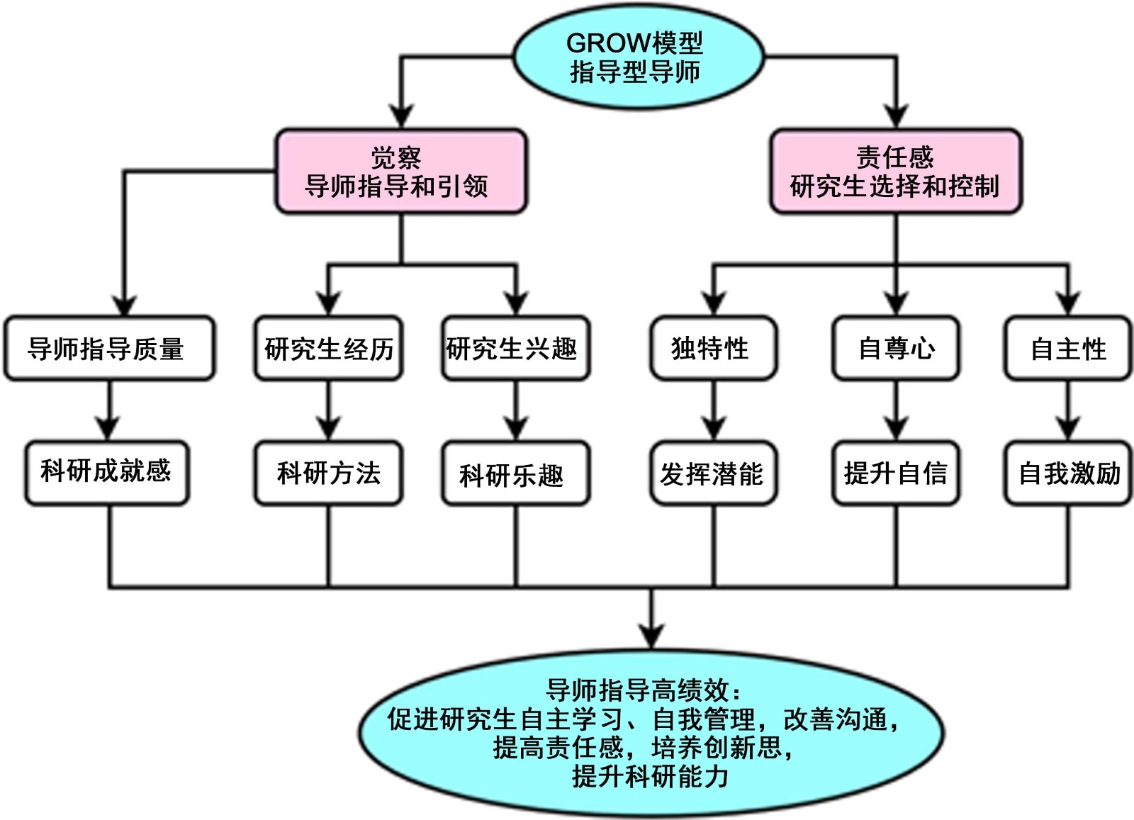 GROW模型指导方法中,导师的角色非常清晰。导师根据研究生特点信任并支持学生去发现问题、分析问题、解决问题。该方法帮助研究生设定明确的科研目标,评估现实状况,探索可行的选择并激发内在的意愿和动力;并且有助于发挥研究生潜能,提升研究生科研自信,培养研究生的科研综合能力,帮助他们取得更好的科研成果并获得科研成就感。