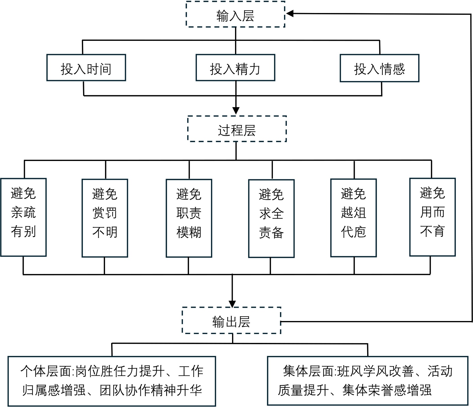 本模式形成一个“赋能–使用–成长–再赋能”的螺旋式上升闭环(见图1)。该框架以“培用结合”为核心理念,以“三投”为输入引擎,为干部赋能,提升其“想干事、能干事”的意愿与能力,以“六避”为调节保障,优化使用环境,确保其“干成事、干好事”,最终输出高胜任力、高归属感的班团干部与高绩效、高凝聚力的班集体。这些成果反过来又验证并优化培养体系,开启新一轮的、更高层次的再赋能。
