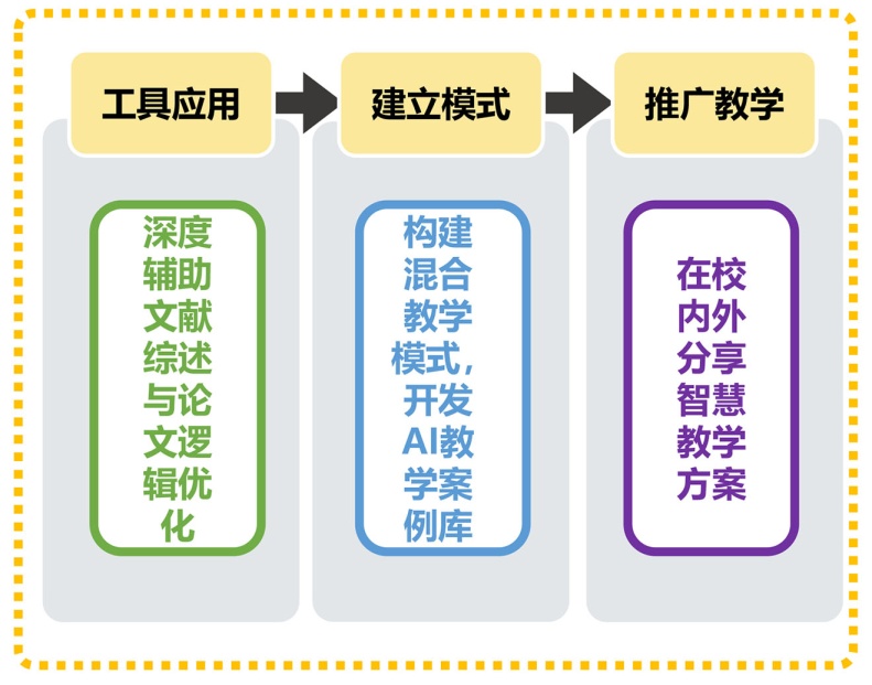 结合“科技写作”课程中论文撰写、分析文献等核心教学模块,以AI技术为纽带重构教学内容与混合教学流程,让教师在实践中深化AI应用能力。
