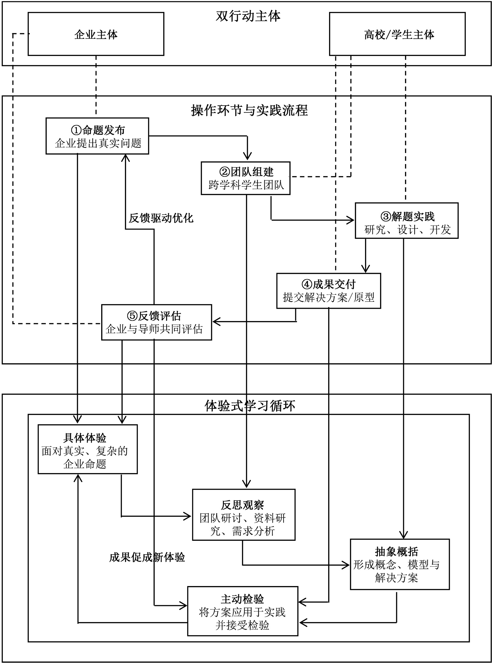 图1. “企业命题 + 学生解题”建构主义与经验学习模式框架图