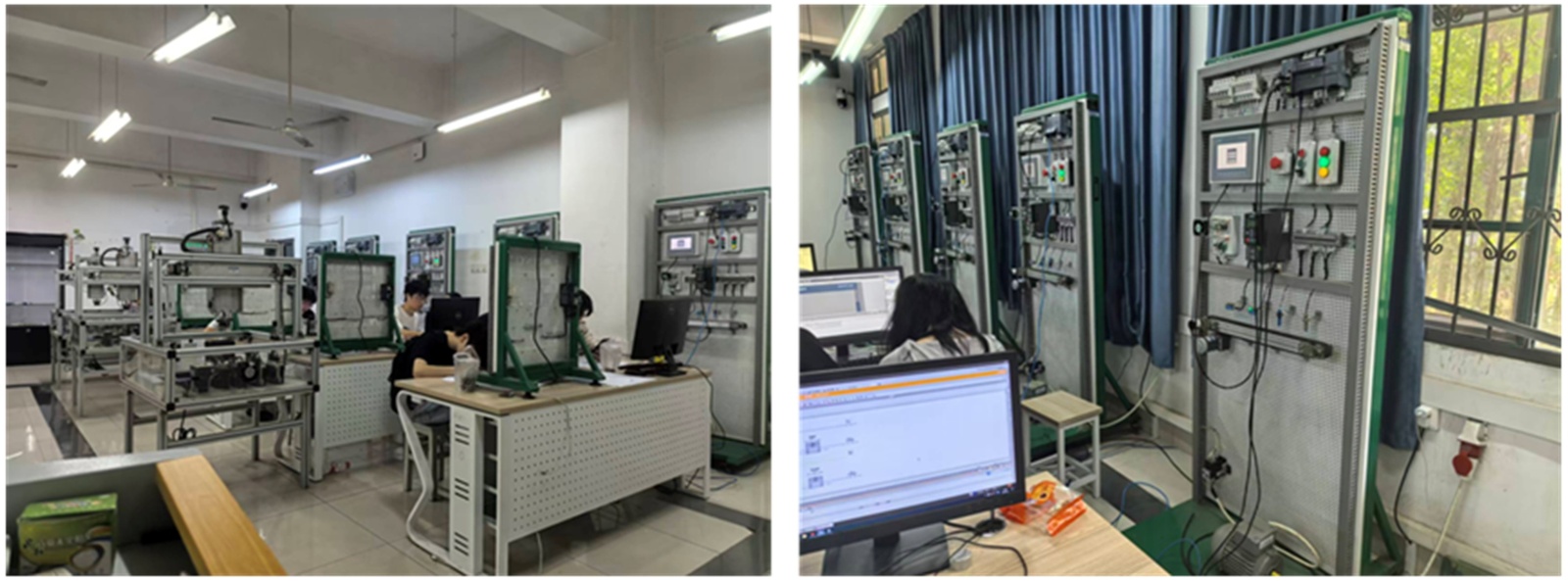 在新工科背景下,本科生需要具备宽口径、厚基础与一定的交叉认知。因此,课程内容以“基础扎实、实践够用”为原则,通过整合电气控制、PLC编程与机器人基础应用等内容,构建跨专业交叉的学习路径。围绕这一目标,课程改革设计了四个方面的基本框架:(1) 内容优化:引入智能制造、工业网络、简单AI控制等新兴技术案例,使学生了解行业发展方向;(2) 方法创新:采用线上线下混合教学,配合虚拟仿真平台帮助低基础学生快速入门;(3) 实践强化:依托实验室资源,开展可操作性强的基础实验,并鼓励参与校级竞赛或企业开放日,增强工程情境体验;(4) 评价多元:建立以课堂表现、实验过程、项目成果为依据的综合性评价体系,更加关注学习过程与能力形成。