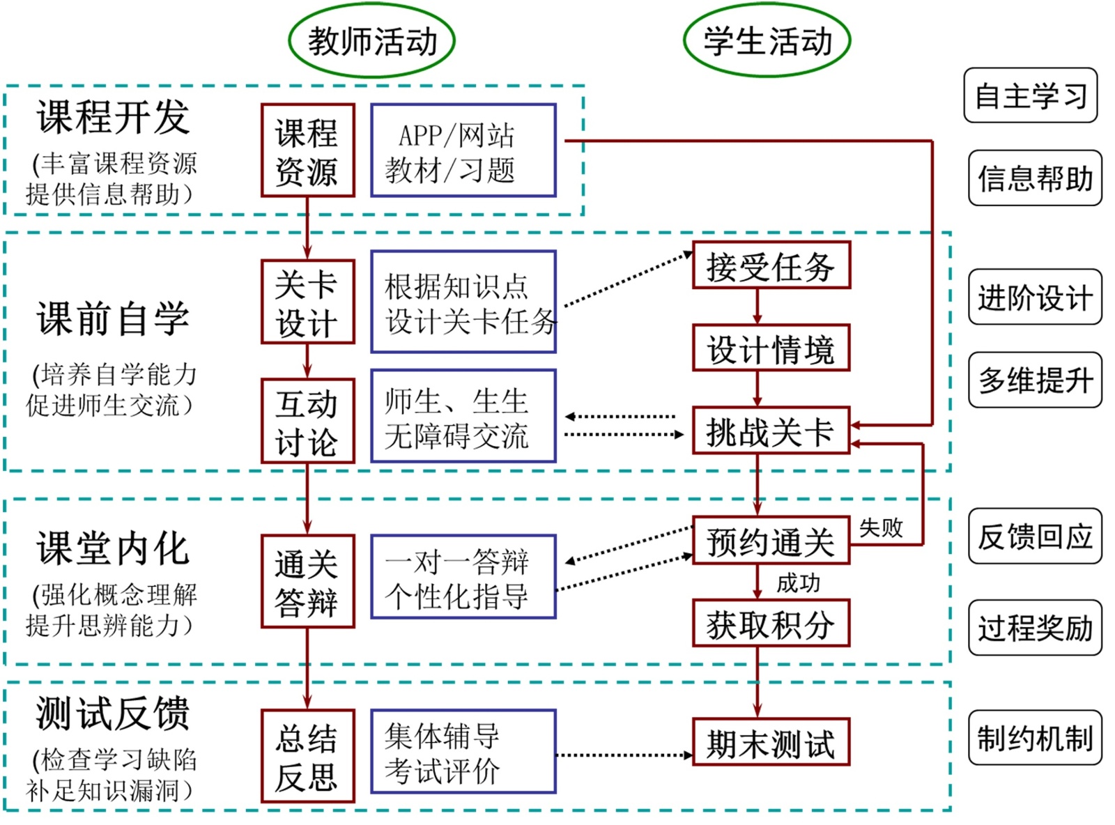分层教学目标设计:将每门课程的教学目标分解为基础目标、进阶目标和挑战目标,对应不同的关卡难度。