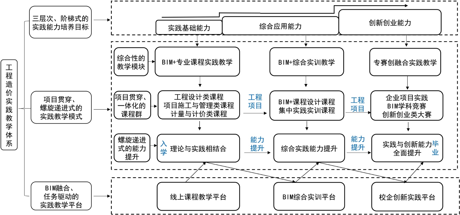 根据工程造价专业“基础能力→综合能力→创新创业能力”的进阶式培养路径,需构建与之适配的实践教学体系。