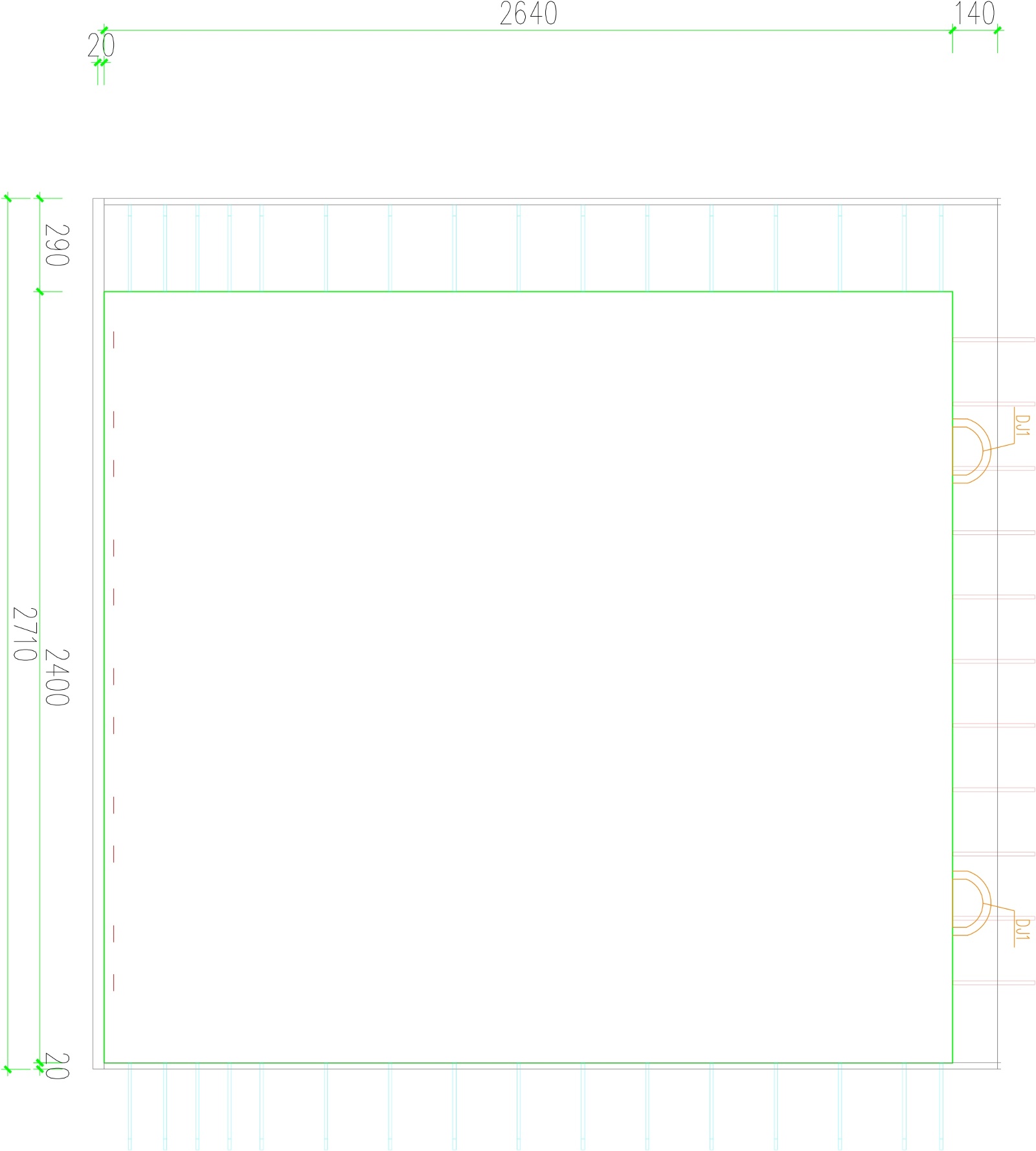基于建筑项目图纸(图1),该项目的气凝胶复合保温板拼装图如下(图2)构建三维模型尺寸为2669 mm (长) × 2900 mm (高) × 300 mm (厚),含三部分:钢筋混凝土墙体(200 mm)、保温层(气凝胶40 mm/XPS 100 mm)、混凝土保护层(60 mm)。模型如图3,图4。