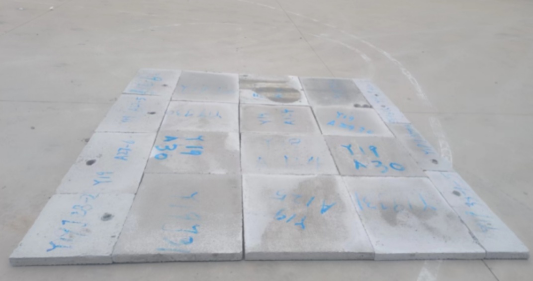 试验材料:气凝胶复合板(300 mm × 300 mm × 40 mm,芯材为气凝胶复合真空绝热板,保护层为微陶粒混凝土)、XPS板(300 mm × 300 mm × 100 mm)、钢筋混凝土试块(300 mm × 300 mm × 200 mm、300 mm × 300 mm × 60 mm)、密封胶(避免侧向热损失)。