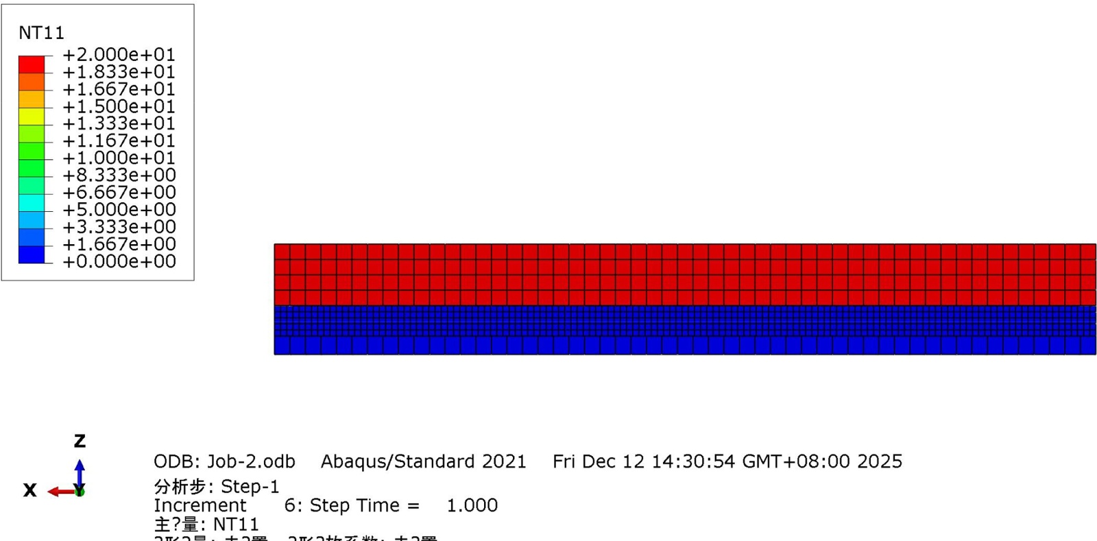 选用Abaqus中DC3D8单元(8节点线性热传导六面体单元),适用于稳态热传导分析,计算精度与收敛速度兼顾。采用非均匀网格划分:保温层(核心传热区)网格加密至20 mm,混凝土墙体(次要区)设为50 mm。网格质量检查显示,平均纵横比1.2 (≤2)、扭曲度 < 0.3 (≤0.5),满足模拟精度要求。