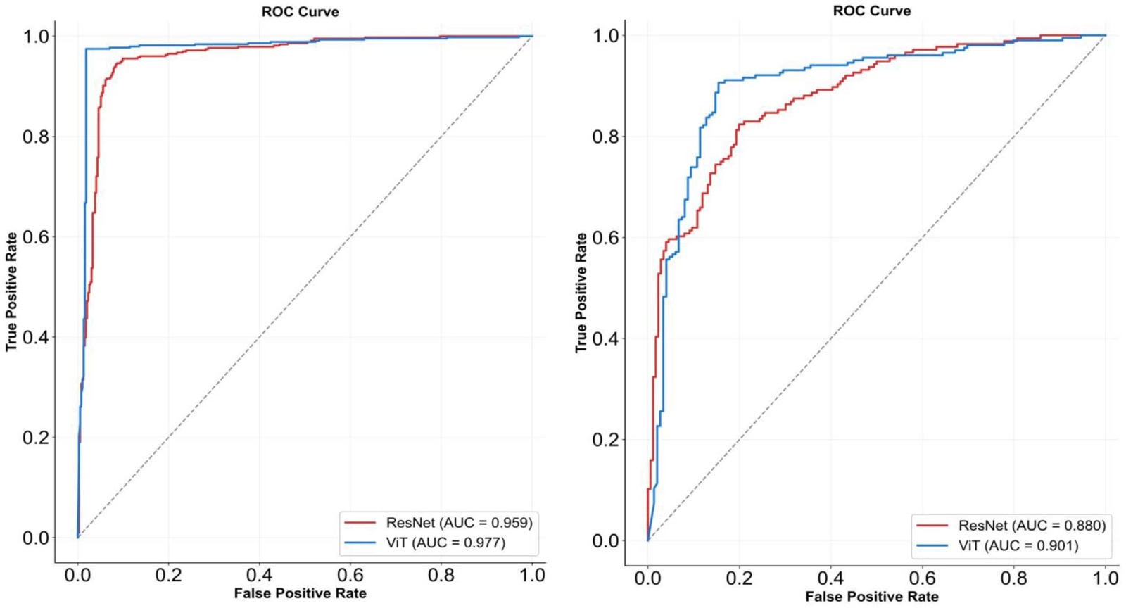 因此,本研究旨在比较基于CNN框架的ResNet模型与ViT模型在术前CT图像上鉴别肺结节良恶性的性能差异,以探究不同特征提取机制(局部卷积特征vs全局自注意力特征)在肺结节分类任务中的有效性,并为优化早期肺癌影像诊断方法提供依据。