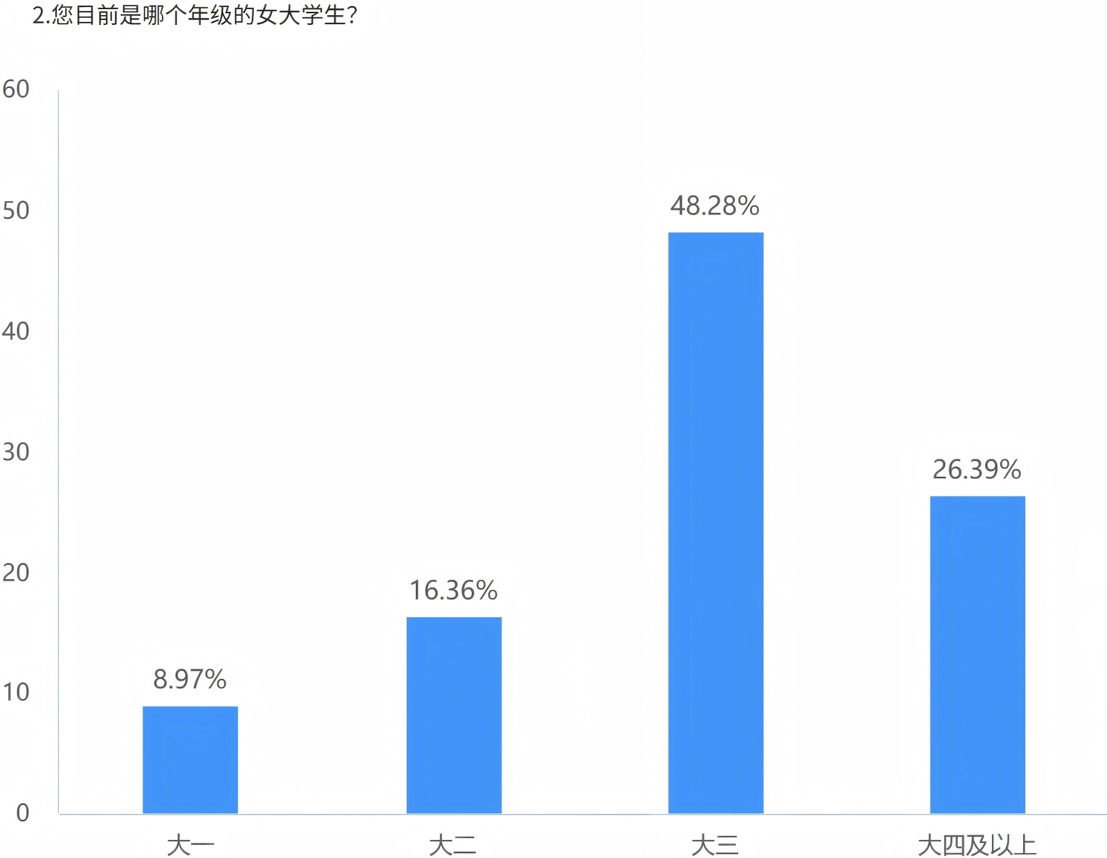 见图2年级构成为:大一占8.5%,大二17.0%,大三49.4%,大四及以上25.0%。