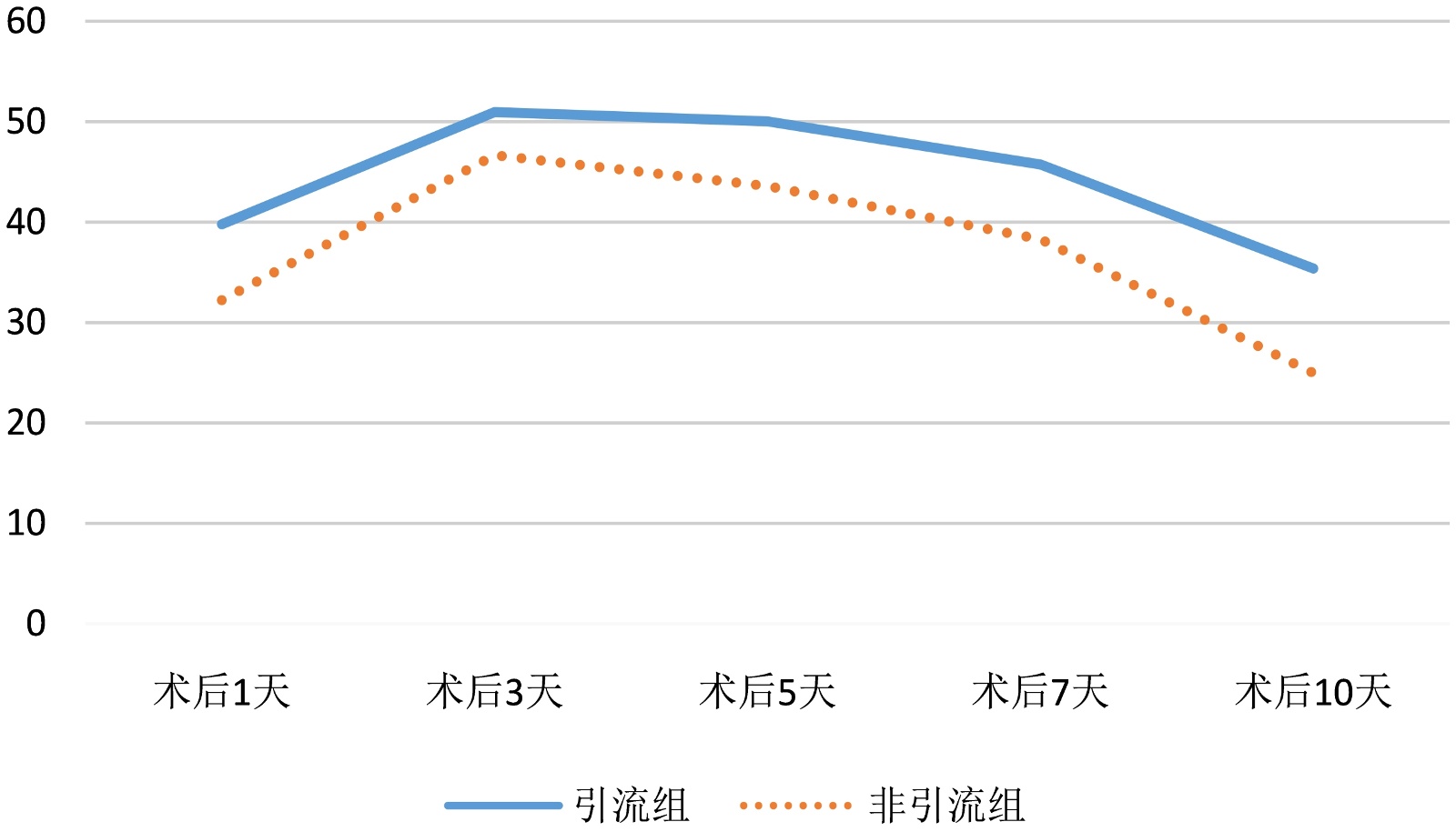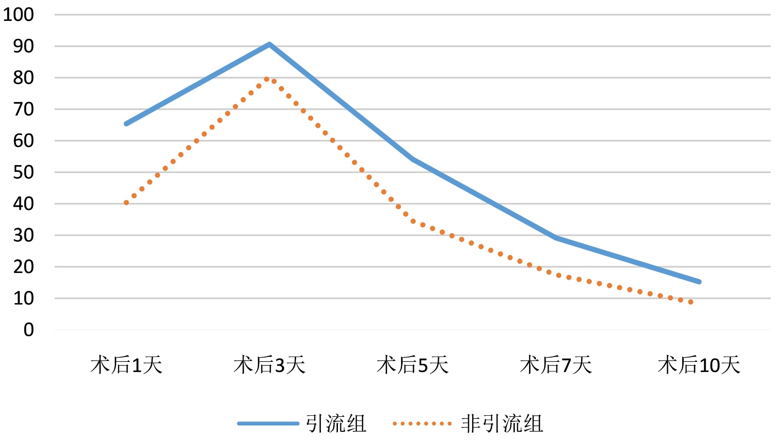 使用SPSS26.0软件进行统计学数据分析。比较引流组以及非引流组两组的术后相关资料。计量资料若服从正态分布则以均数 ± 标准差(x ± s)表示,采用独立样本t检验。P < 0.05表示差异有统计学意义。