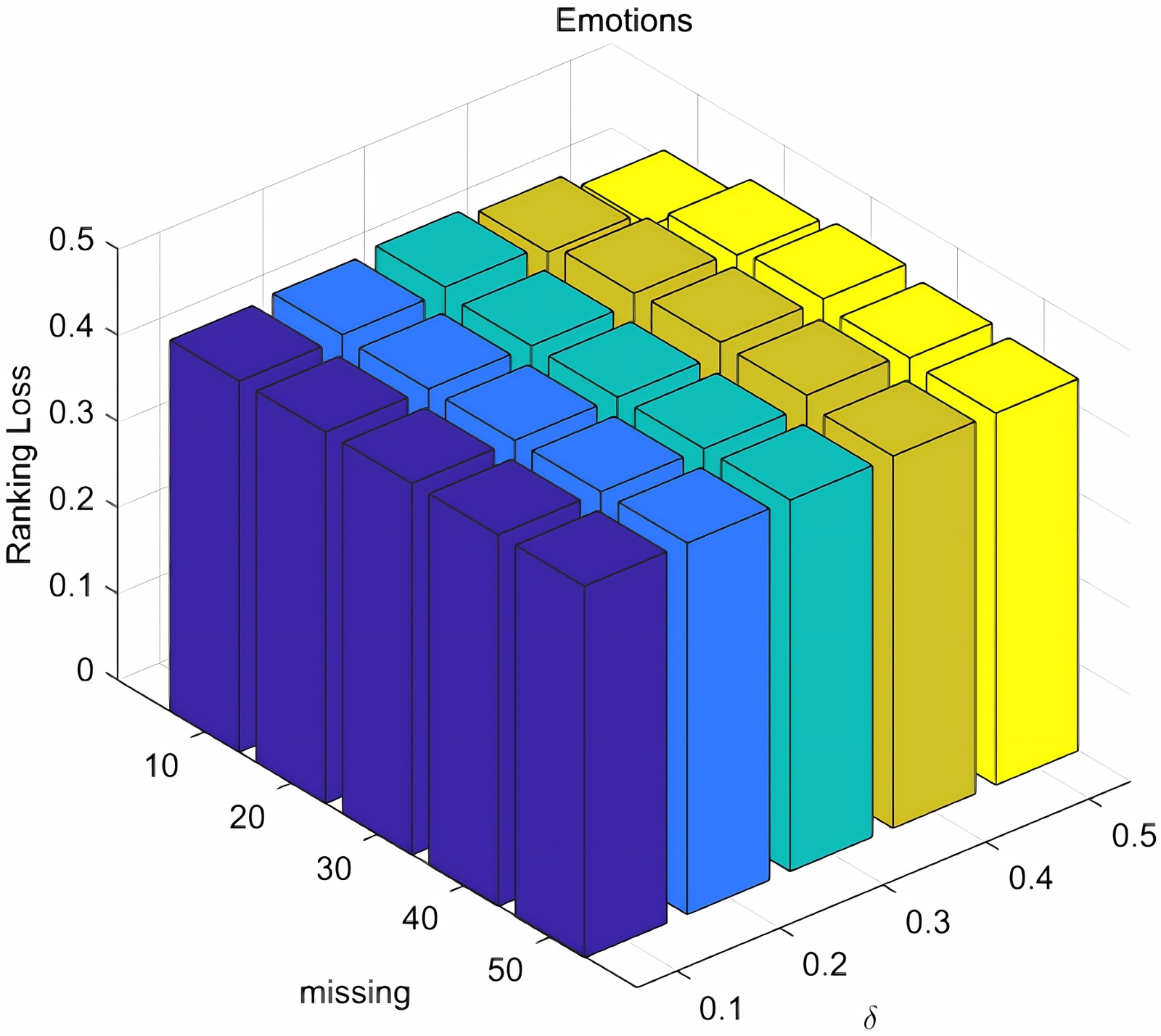 由表2可知,对于AP指标,IMFSFCE算法在所有数据集上的实验结果均不低于其余四种对比方法;对于HL、RL、CV指标,IMFSFCE算法在所有数据集上的实验结果均不高于其余四种对比方法;对于OE指标,IMFSFCE算法在Flags、Cal500、Water quality、Virus数据集上的实验结果均不高于其余四种对比方法,在Emotions数据集上与最优方法相差0.0049。相较于其余四种对比方法,IMFSFCE算法在5个数据集上的AP平均提升3.48%,HL、RL、CV和OE平均下降3.02%、4.33%、2.83%和4.64%。上述结果表明,IMFSFCE算法在保证平均精度提升的同时,有效控制了多种误差相关指标的增幅,整体上获得了更优的分类性能。