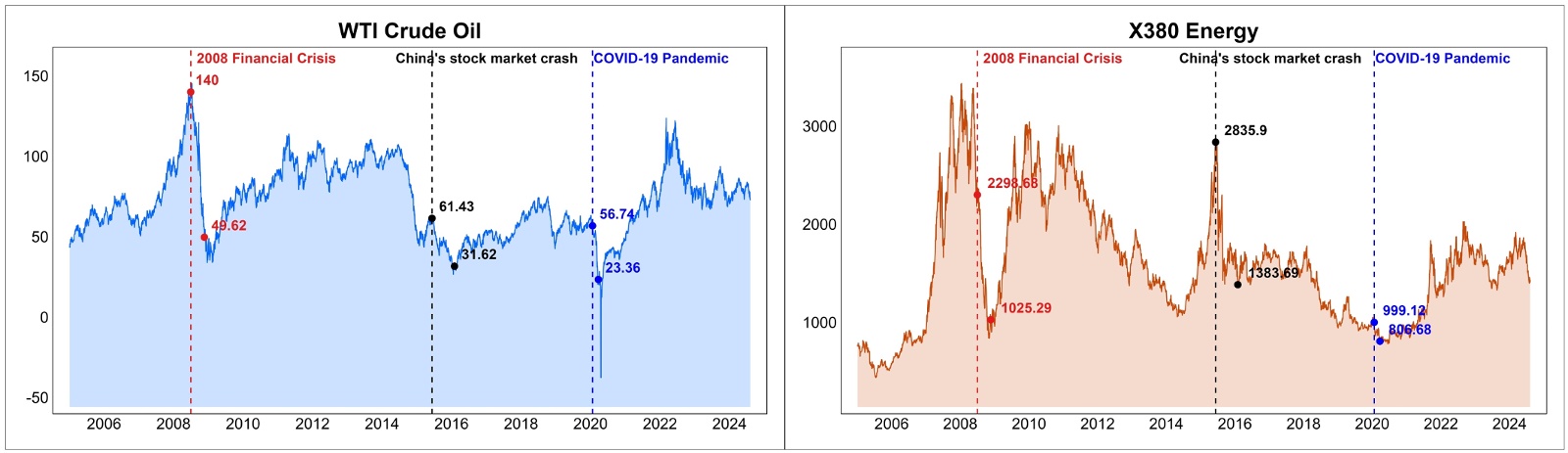 Figure 1. Volatility of international oil prices and China’s energy sector index during major events