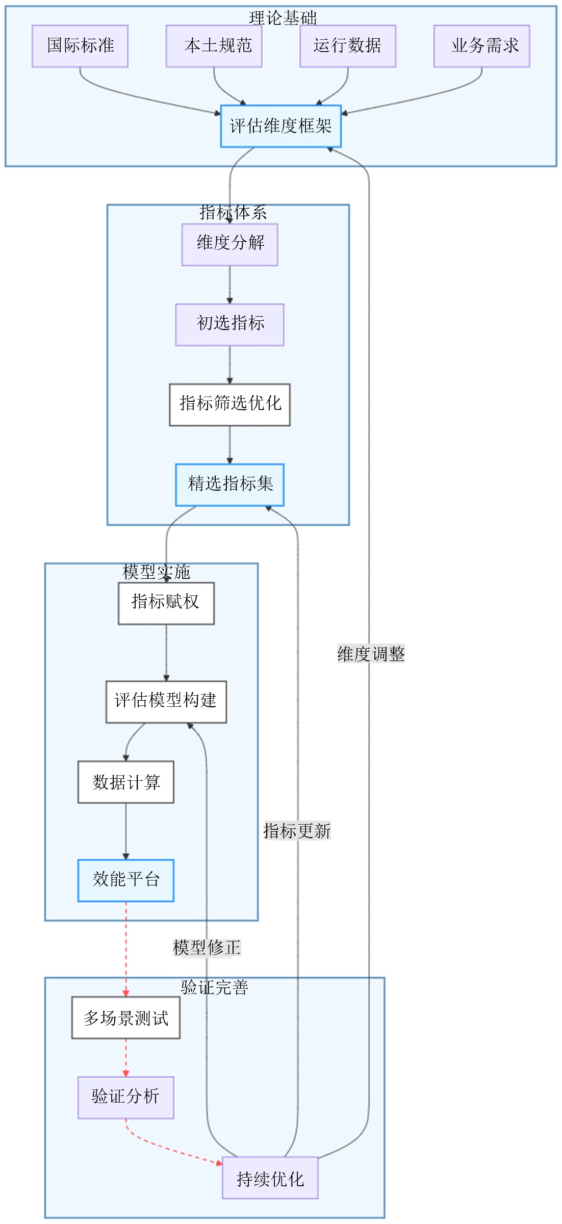 (1) 理论奠基:本阶段旨在整合国际标准、本土规范、运行数据及业务需求,确立运行效能评估体系的维度框架基础,为系统构建奠定理论基础,可视为体系的“灵魂”。