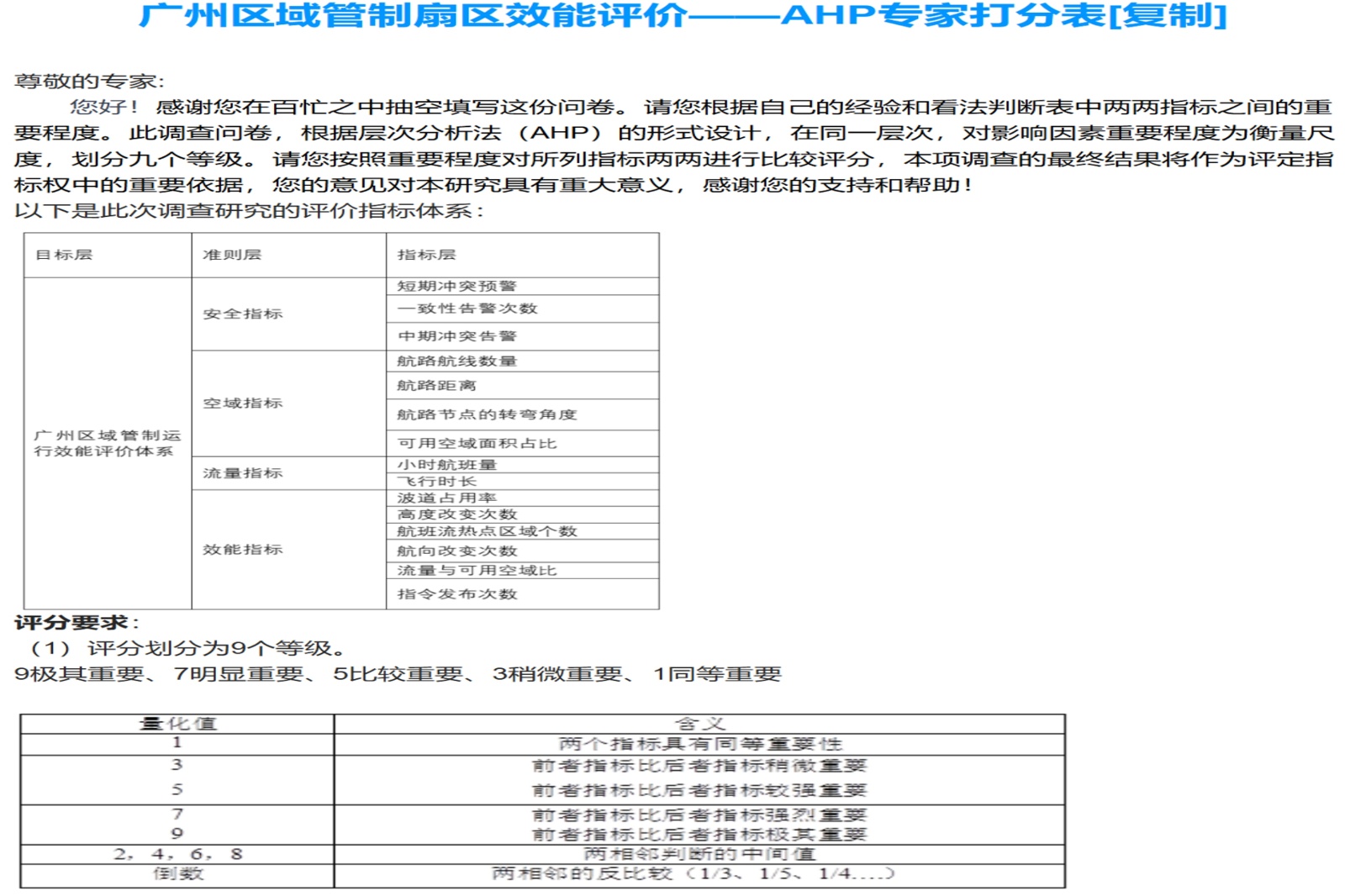 图3. 基于AHP设计的区域管制扇区效能调查问卷
