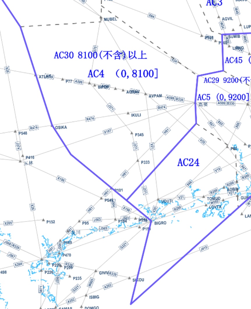 图4. 广州区域管制AC4,AC30以及AC24扇区空域示意图