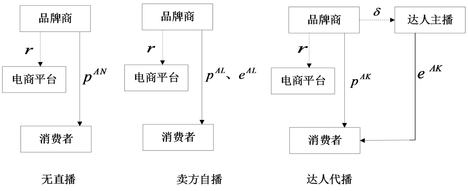 供应链成员可选择直播销售以提高运营效率。在转售模式中,电商平台拥有定价权,决定是否引入直播以及直播投入决策;而在代理模式下,品牌商拥有此决策权。主播以努力程度