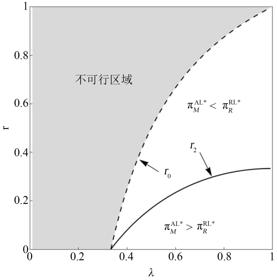 时,存在唯一正的最优解使得品牌商利润最大化。AL模式下产品最优定价、品牌商的最优服务质量努力水平、市场均衡需求以及品牌商和电商平台的最优利润分别为: