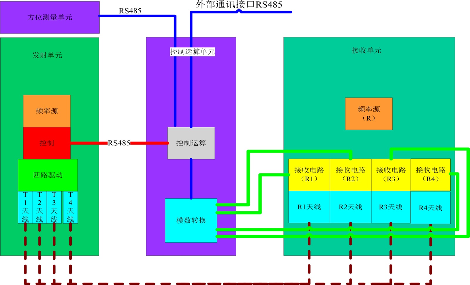 图4. 方位电阻率短节各电路电气连接关系示意图