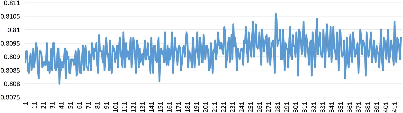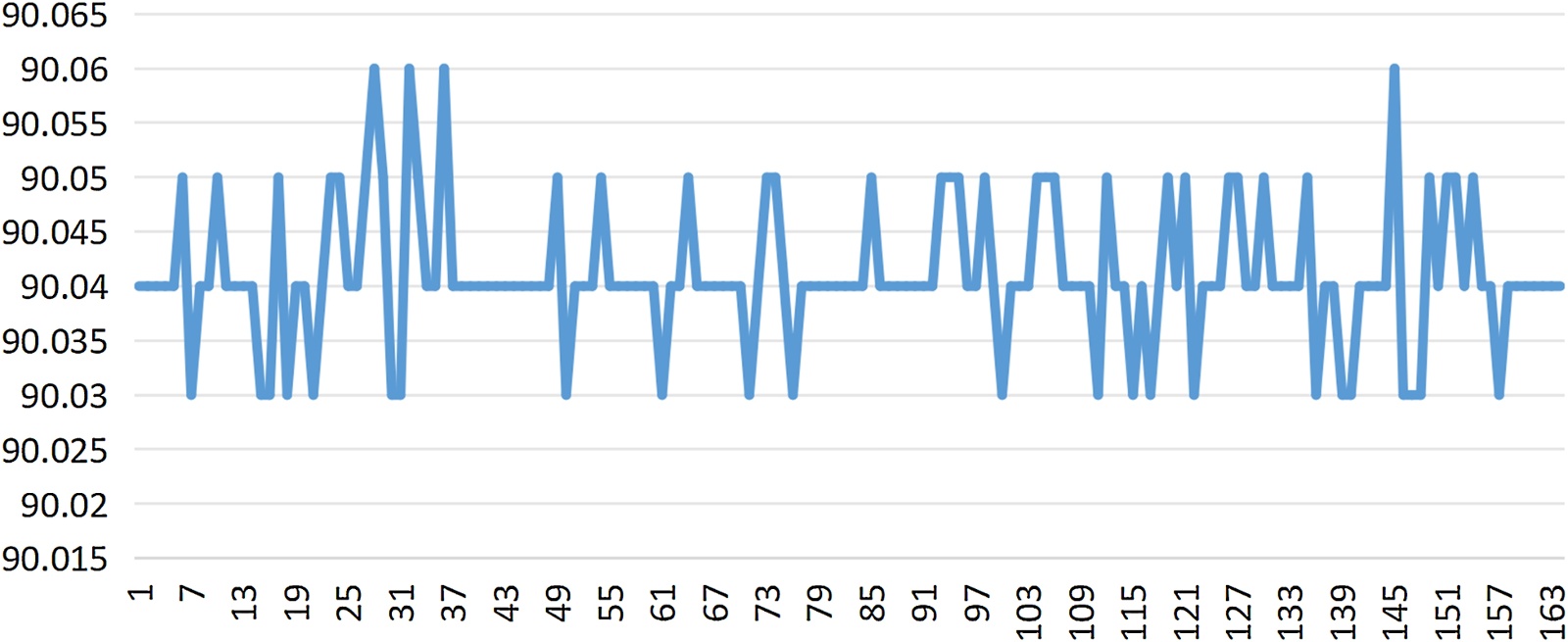 图18. 采集控制电路两路接收信号相位差计算值的波动情况(相位差90˚)