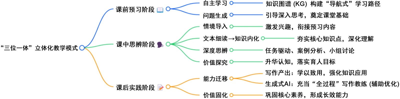 随着新文科建设的深入推进和“课程思政”理念的全面落实,高校外语教学正经历从单一工具性到人文性与价值导向性融合的范式转型关键期。然而,当前英语专业写作教学在实践层面仍面临三重核心困境:其一,教学目标的结构性失衡。传统写作教学普遍侧重于语言形式、文体模板与语法规则的机械操练,正如研究所指出的,“教师注重的是写作方法的传授、篇章结构的训练、词汇语法的强化,却忽略了写作的创造性,更忽视了学生人文素养和价值观的塑造,导致学生机械背诵模板,作文千篇一律,接受性知识不能转化为语言个性化的有效输出”[1]。这种模式陷入了“重技能、轻思想,重形式、轻内容”的固有框架,其后果是写作教学在塑造学生批判性思维、文化主体性与价值判断力方面的核心作用被严重削弱。其二,育人资源的整合性不足。虽然“课程思政”已成为教育界的共识,但思政元素在写作任务设计、语篇分析与产出实践的全过程中未能实现深度融入,进而造成知识传授、能力培养与价值塑造三者难以形成有机衔接与内在联动。其三,技术应用的批判性缺位。数智技术虽已广泛引入教学,但其应用未能与深度学习、思辨训练及价值观教育形成战略协同。若不对数智赋能善加引导,可能会导致学生对智能工具的依赖,削弱其独立思考与学术诚信意识,从而与技术赋能教育的初衷相悖。鉴于此,本研究旨在回应一个核心问题:如何构建一个“课前预习、课中思辨、课后实践”三位一体教学模式,将“数智技术赋能”“写作能力锻造”与“课程思政融入”三者有机融合?具体而言,研究试图探索:1) 如何设计环环相扣的教学活动,使语言训练、思维发展与价值引领同步发生、相互促进;2) 如何善用并超越数智工具,在提升教学效率的同时,培养学生的批判性技术使用意识与高阶思维;3) 如何通过写作教学,自然涵养学生的文化自信、家国情怀与跨文化沟通与协作能力,达到“文以载道,言为心声”的育人境界。