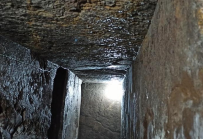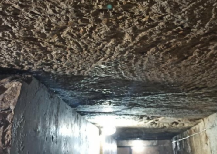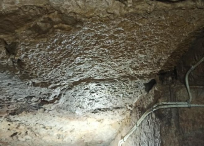 2) 凝结水与高湿环境。主墓室是当前水害最突出的空间之一,主墓室及多数附属墓室壁面普遍可见凝结水挂珠,局部底板有薄层积水或淤泥,长期“湿润–干燥”循环不利于砌体和围岩耐久性。此外,主墓室在通风受限条件下,高湿持续时间长,使凝结水更易反复附着与蒸发浓缩,进一步加剧盐害与微生物滋生风险。