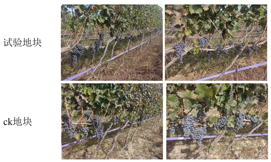 图9为试验地块与ck的长势情况,结果量以及果穗外观均存在差异。