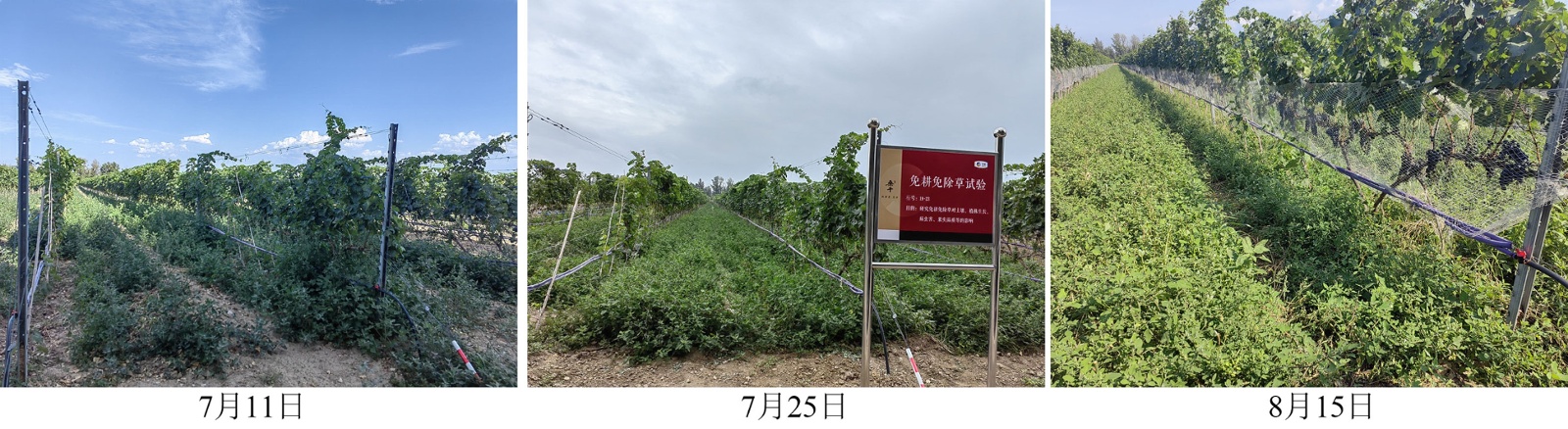 当杂草长至上架高度时进行割草,高度为30 cm左右 |