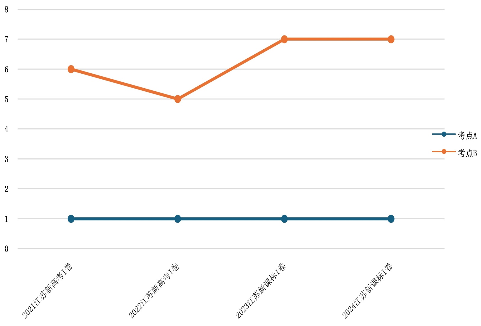 4.1. 2021~2024年江苏新高考I卷阅读理解(第一节)试题考点分布情况分析