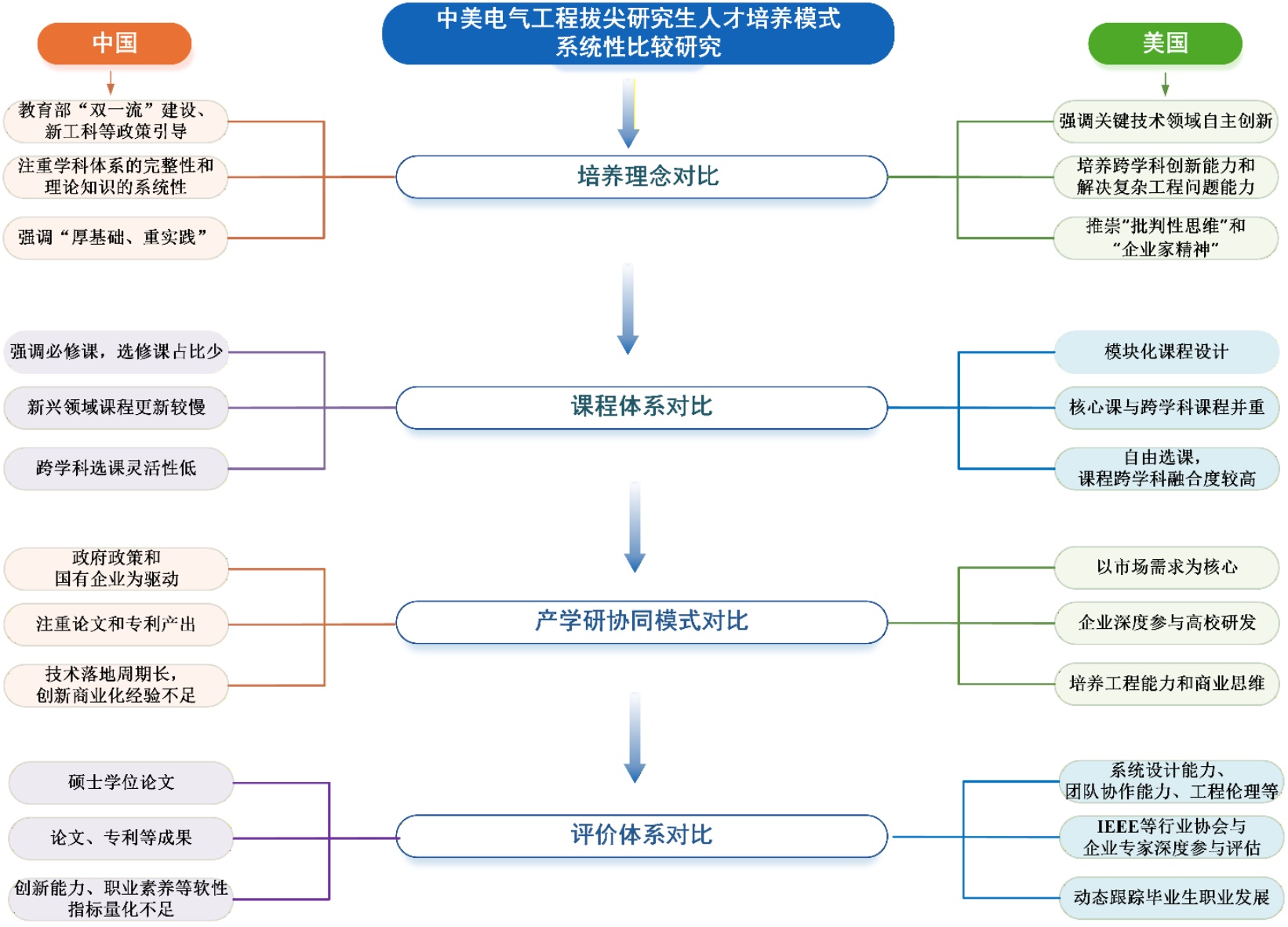 图1. 中美电气工程拔尖研究生人才培养模式系统性比较