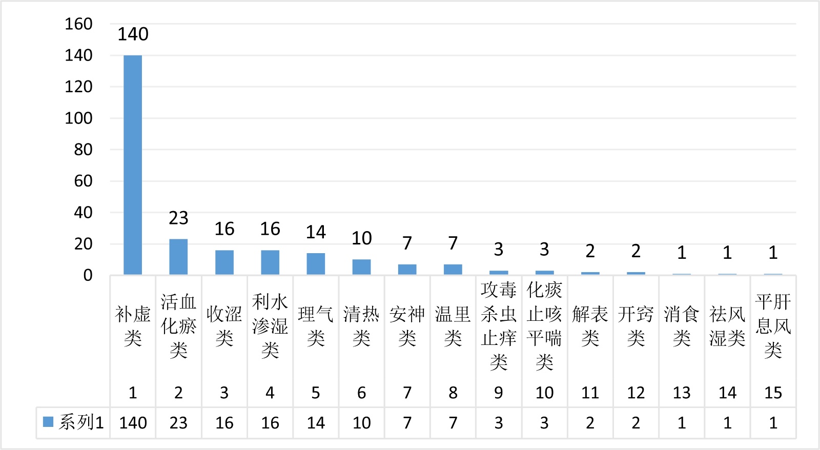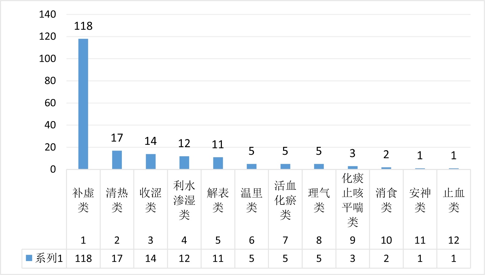 图1. 《竹林寺女科证治》功效统计图