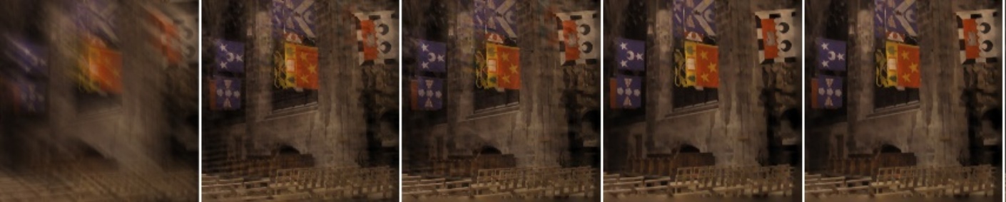 图4. 误差比率累计在推理时间对比实验中,为了能同时证明本方法在质量和效率上的双重优势,我们基于低中高三种有不同分辨率的数据集Levin [17]、Kohler [16]与Sun [27],将本文方法与[25]和[26]进行比较