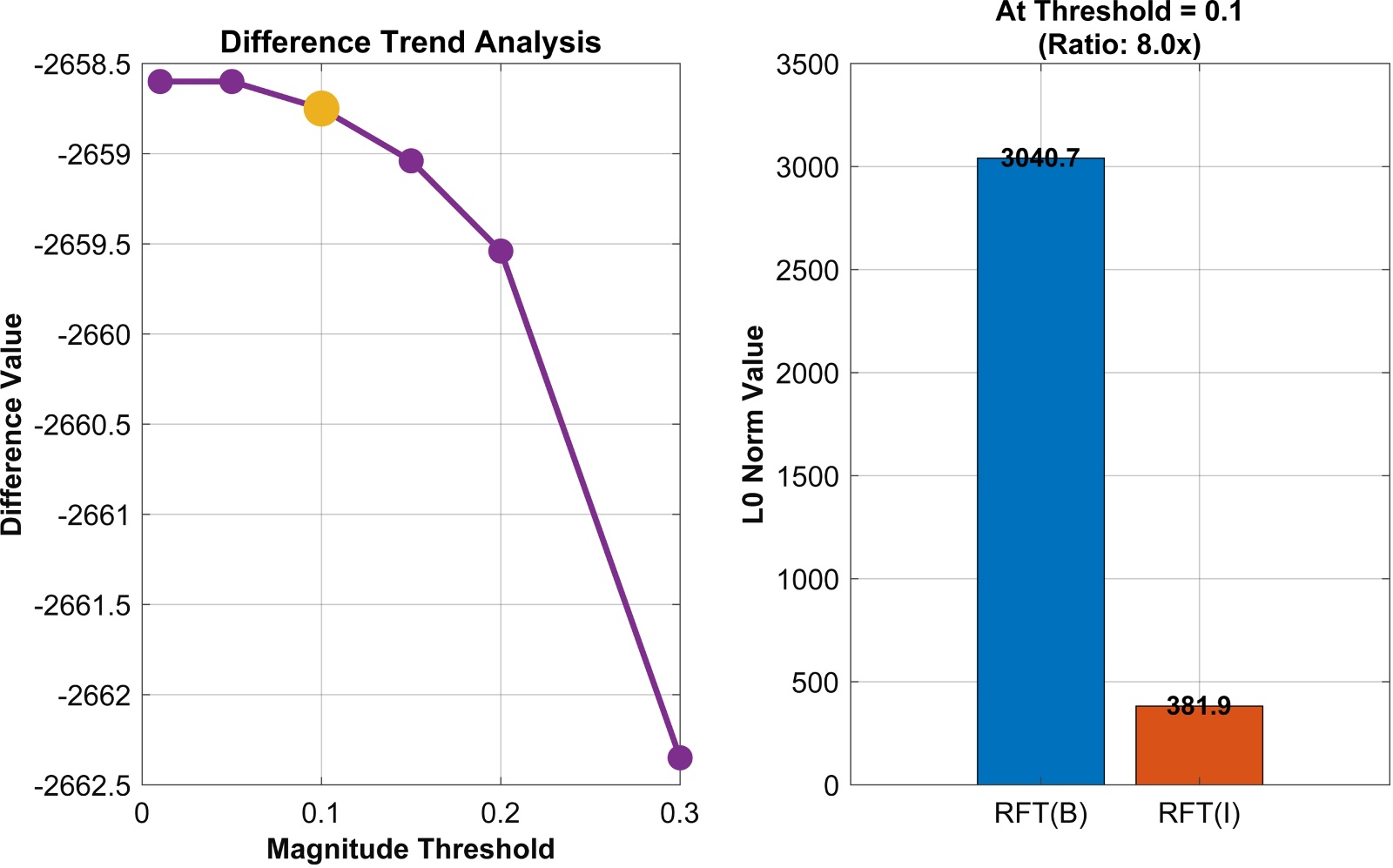 Figure 2. The average L0 norm of clear and blurred images after AFTS processing; 2. The average L1 norm of clear and blurred images after AFTS processing; 3. The difference in L0 norms between clear images and blurred images; 4. The difference in L1 norms between clear images and blurred images