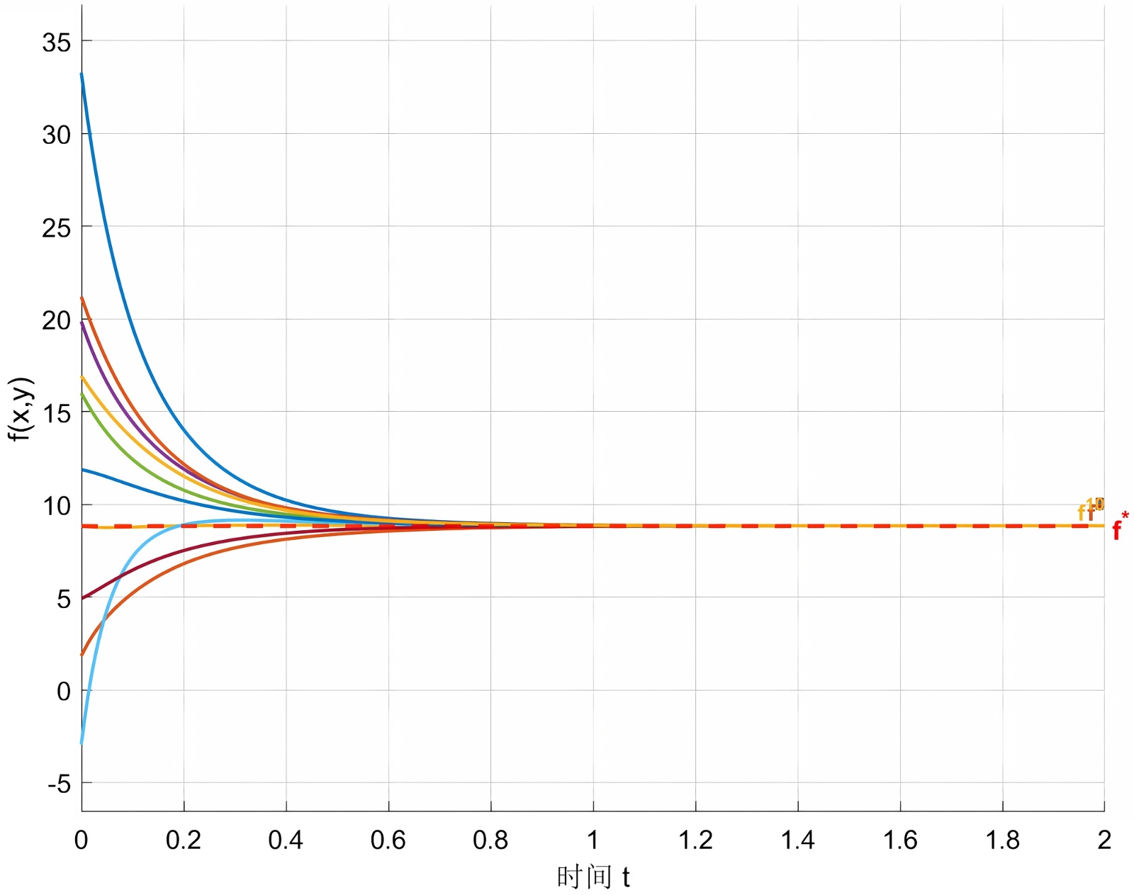 。可以看出,尽管初始点分布在较广的范围内,所有轨迹均能快速收敛到理论最优值,验证了神经网络的全局收敛特性。
