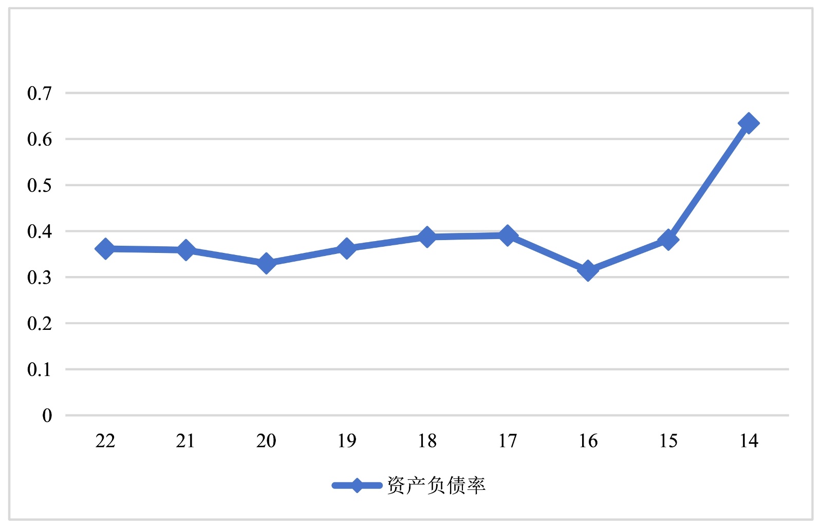 Figure 2. Changes in Alibaba’s debt-to-asset ratio from 2014 to 2022