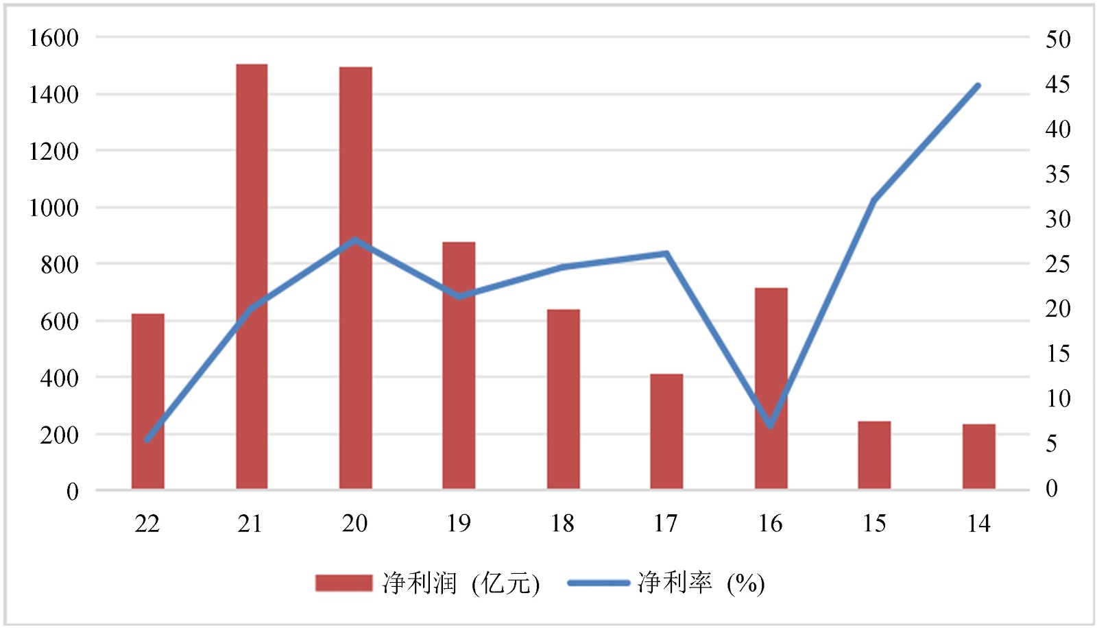 Figure 3. Alibaba operating profitability trend chart in 2014~2022