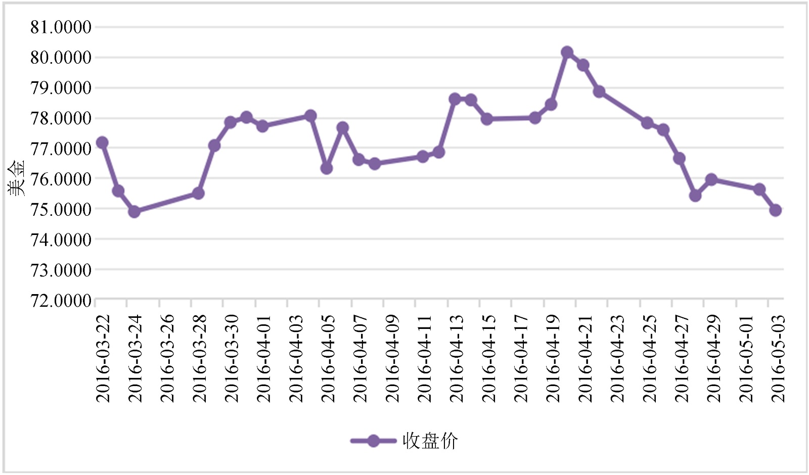 通过选择分析阿里巴巴同Lazada并购前后半个月发股价进行分析,进而证明证券二级市场对跨国并购活动的反应,如图6所示。