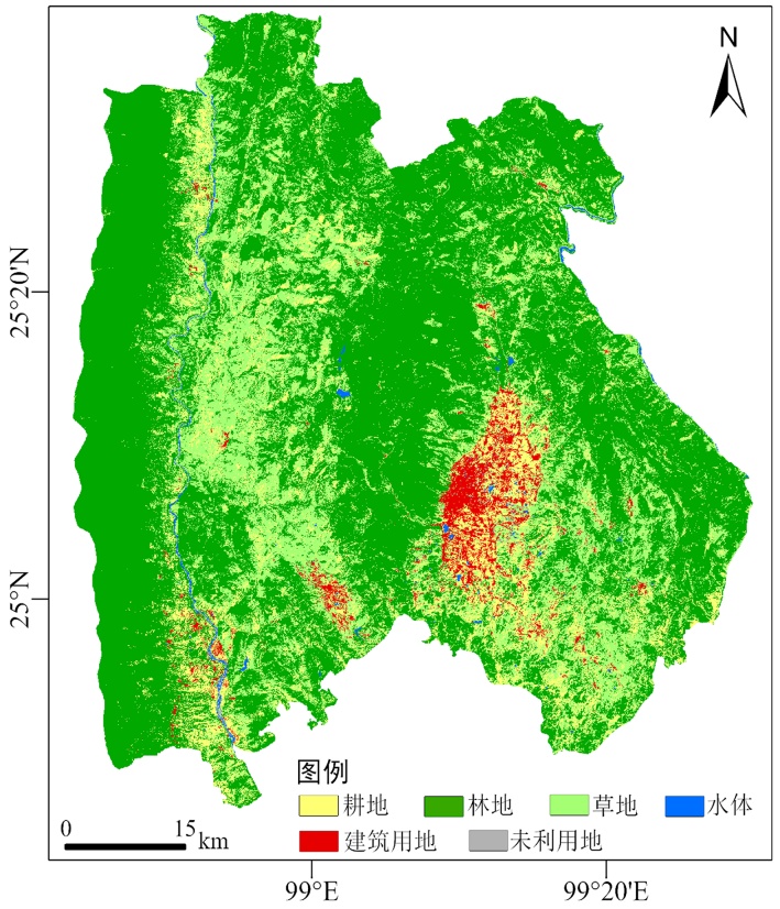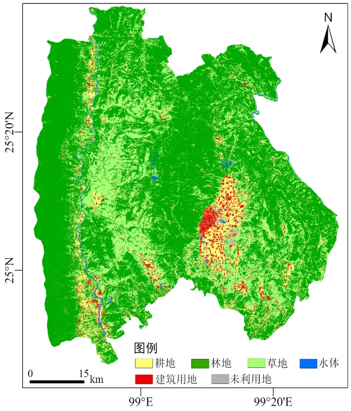 图2. 2015年隆阳区土地利用概况图