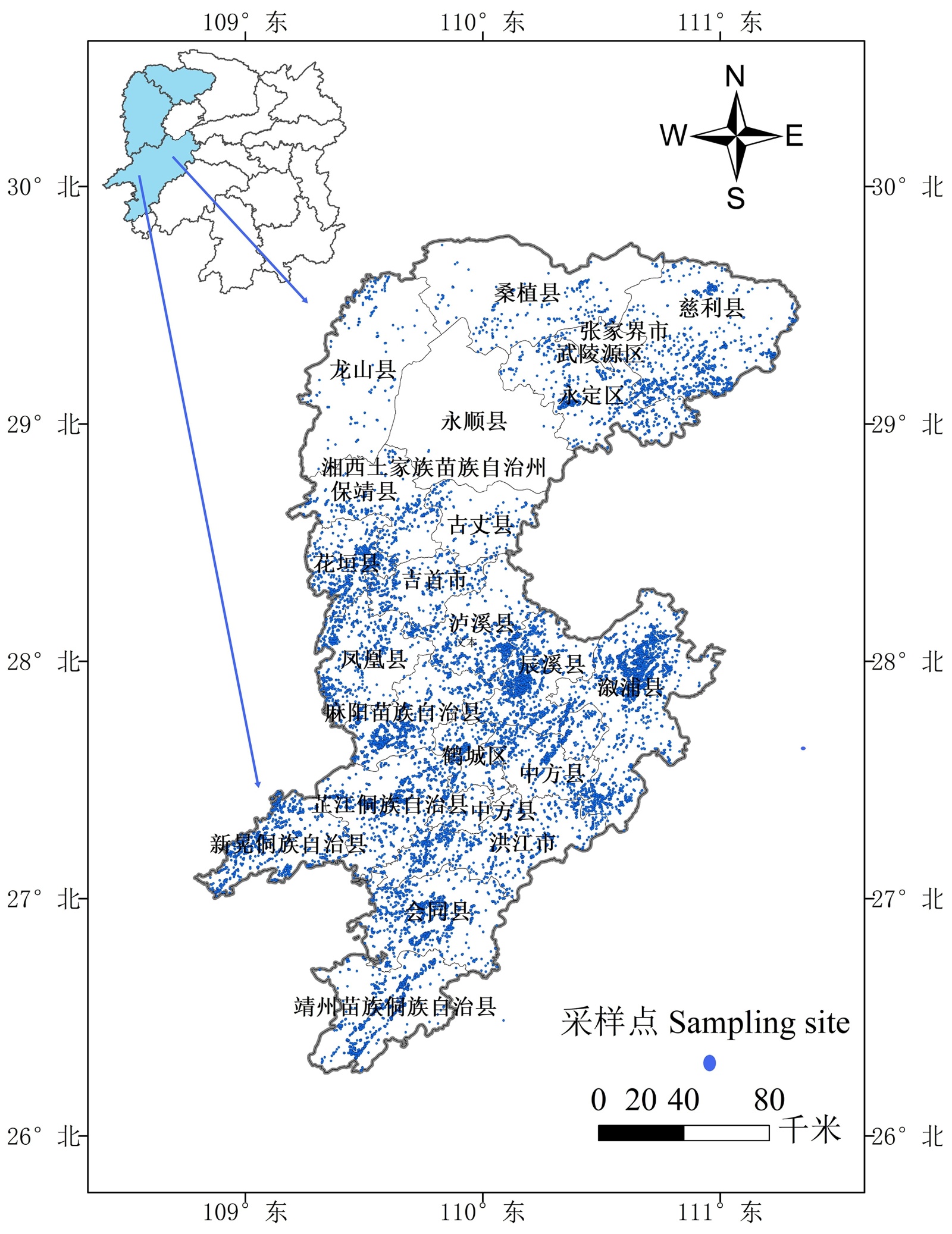 近年来,有许多关于Se的研究。肖凯琦等研究发现湖南省龙山县耕地土壤Se其块金系数为43.2%,属于中等空间变异,说明土壤硒既受自然因素(成土母质、土壤类型等)又受人为因素(人类活动)的影响[4]。申顺研究发现镇雄县土壤硒的空间分布变异程度属于中等,且成土母质、土壤类型、海拔、pH和有机质对土壤Se含量均有影响[5]。宁驰等对临澧县的稻田进行研究,发现临澧县稻田土壤Se、稻米Se含量与BCF的空间自相关性显著,且受到成土母质、土壤理化性质与气候因素影响[6]。周文龙等基于黔南荔波县水稻–根系土系统的研究发现,土壤有机质与铁铝氧化物对硒的吸附固定作用会限制水稻对硒的富集。同时,研究结果提示硒与重金属元素在该系统的迁移过程中可能存在拮抗关系[7]。可以发现现有研究多为小尺度的研究,且多集中在土壤硒或水稻硒单方面上,因此本研究以湘西稻田土壤–水稻系统为研究对象,采集土壤和水稻样本,将三年数据合并进行分析,旨在:(1) 揭示湘西土壤Se、水稻Se及生物富集系数(BCF)的长期、稳定的空间分布特征;(2) 阐明成土母质、土壤属性和气候因子对湘西Se分布与富集的影响。合并分析可能平滑或掩盖了年度间的真实波动,为数据带来难以量化的、非系统性的噪音,但可以增强统计可靠性,评估在区域尺度上硒含量的总体状况与潜在风险,为宏观管理决策提供更具普遍性的科学依据。