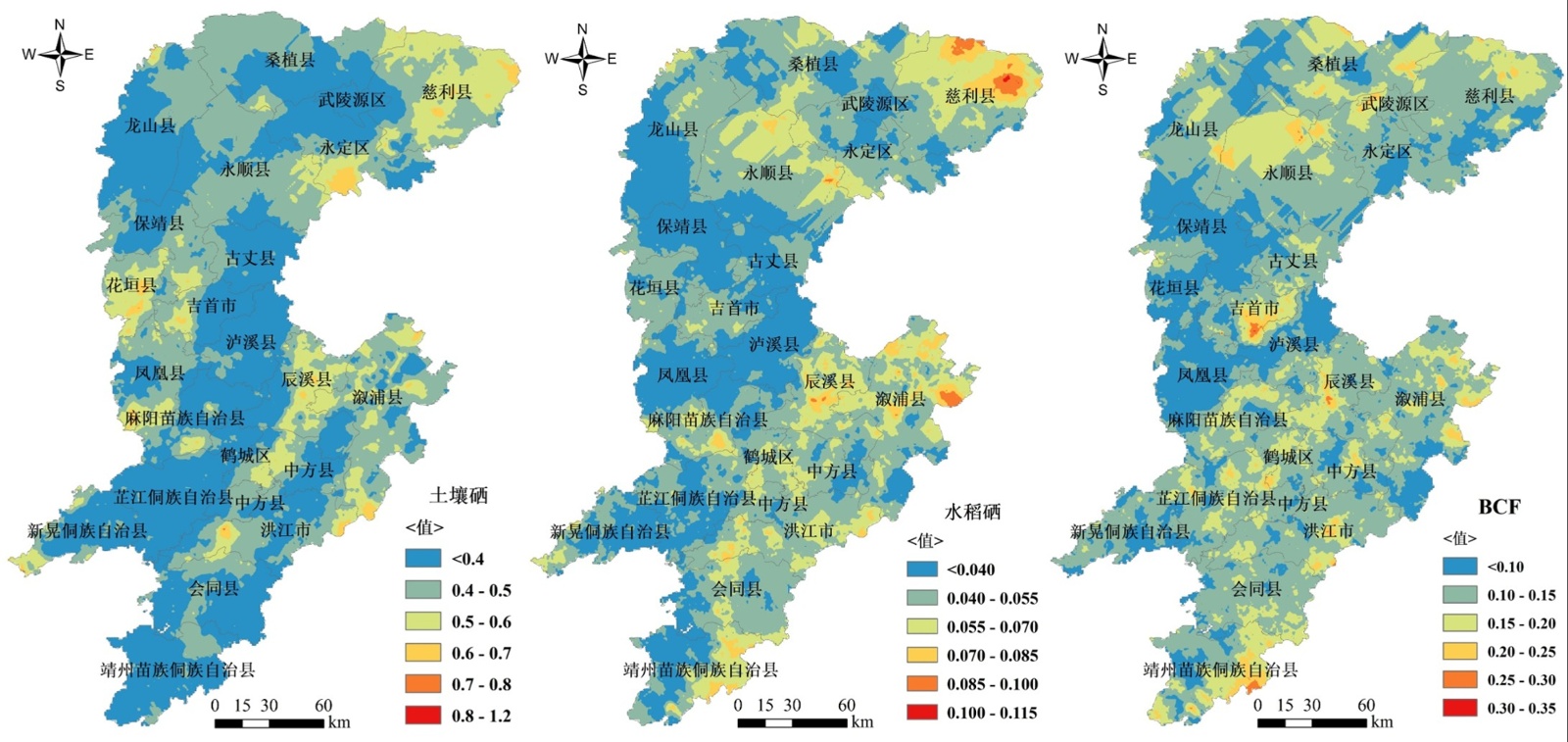 Table 2. Semivariance model and theoretical parameters of soil selenium, rice selenium and enrichment factor BCF in Xiangxi