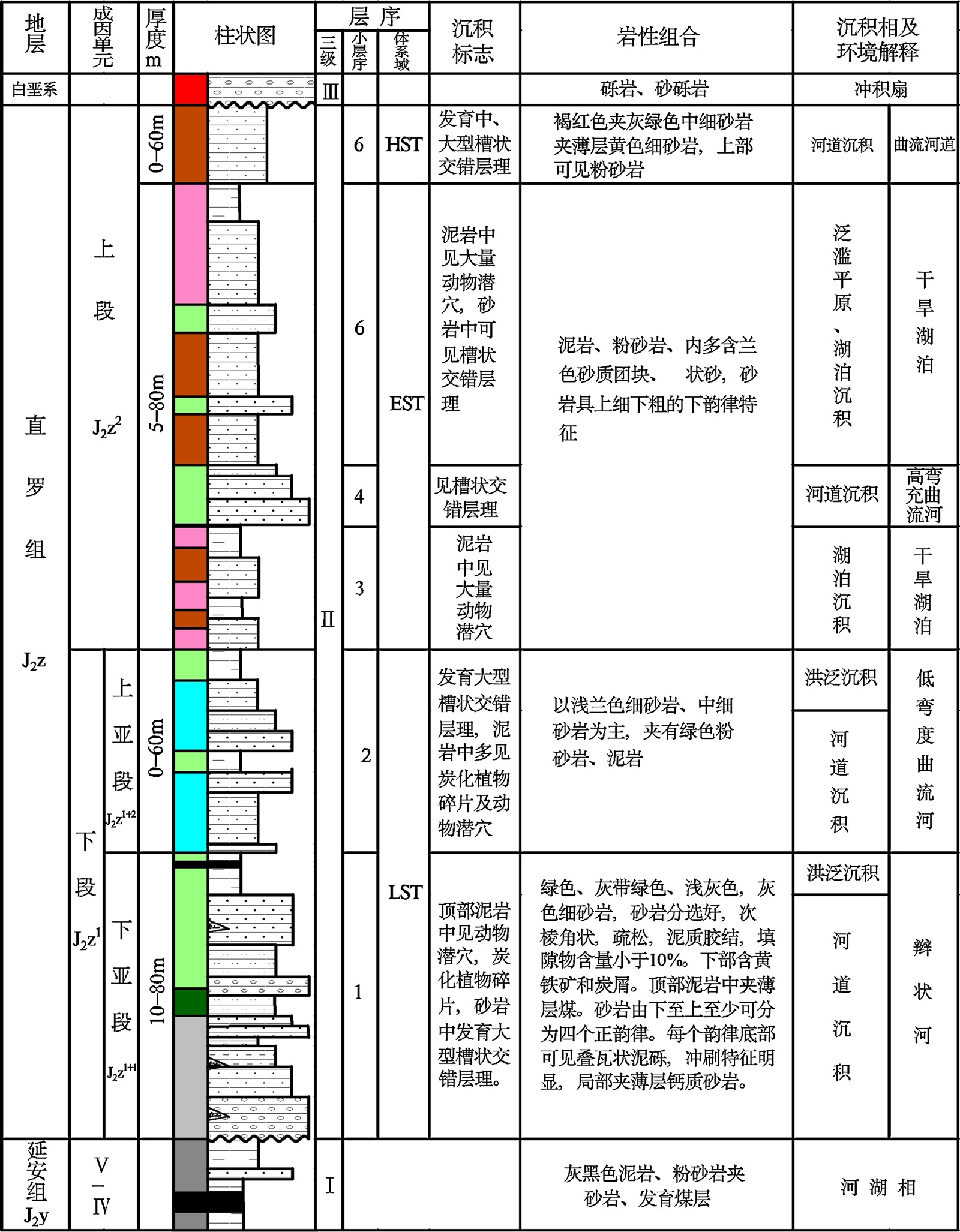 图2. 鄂尔多斯盆地东北部塔然高勒地区直罗组综合柱状图