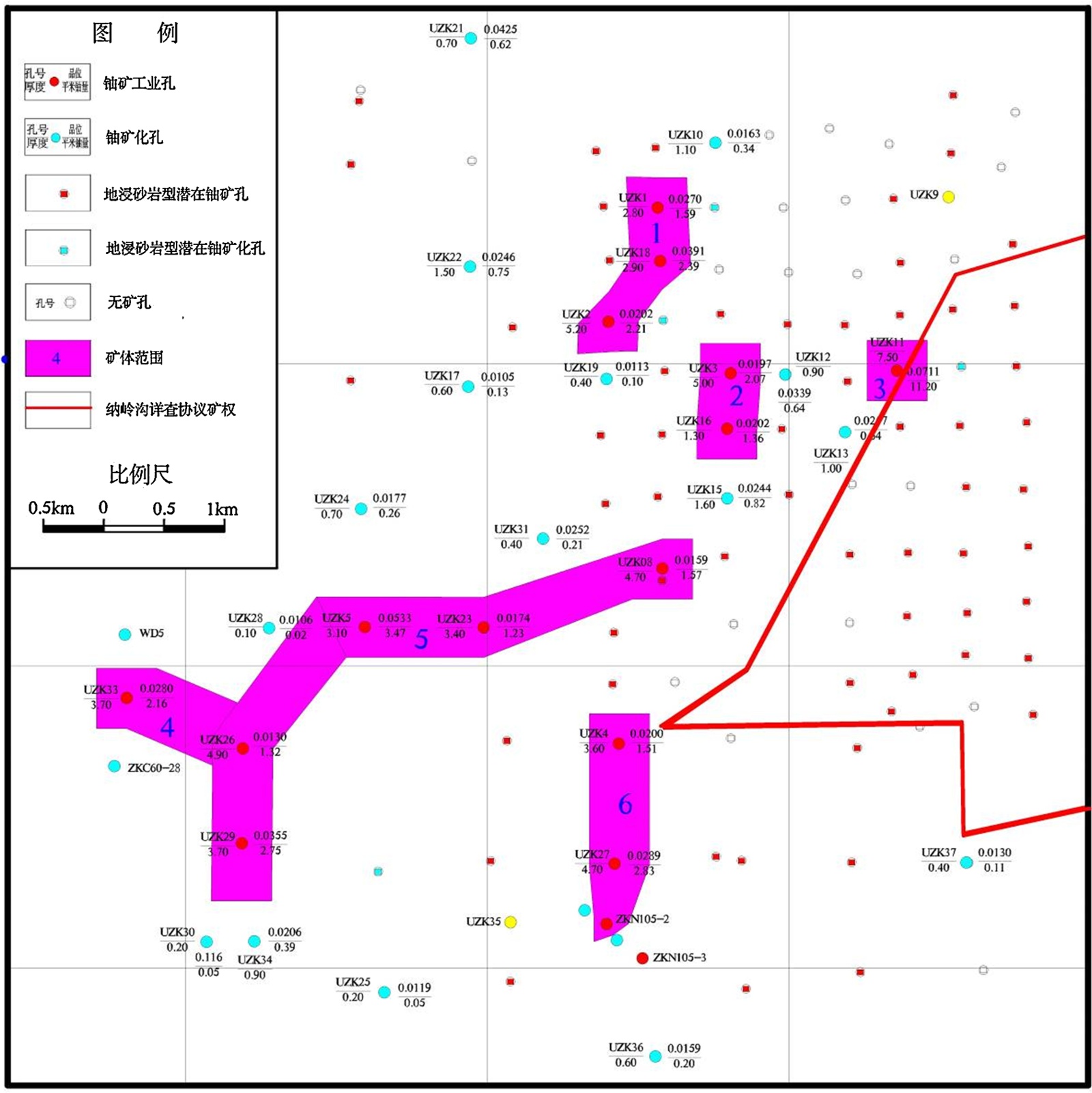 Figure 4. Projection map of ore bodies (strata) in the Taran Gaole Area of the northeastern Ordos Basin