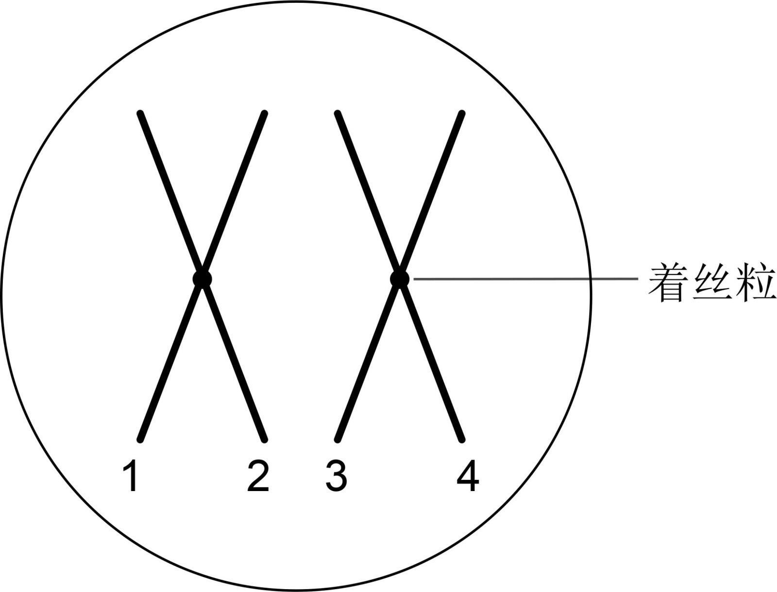 在减数分裂过程中,除了DNA、染色体和姐妹染色单体数量上的变化外,还涉及到它们之间的相互联系。这一过程同样运用了数形结合的思维方法。与前者不同的是,这里将数的关系转变为了简化的模型图(图3)。联会的同源染色体含有两个着丝粒。其中,1与2 (或3与4)互为姐妹染色单体,DNA则分别位于成对的染色体上,并随着染色体的复制而复制。图形清晰展现了两条染色体、两对姐妹染色单体以及4分子DNA的相互关系。