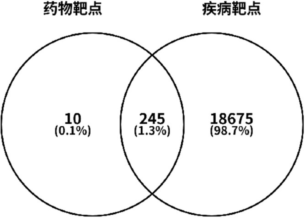 通过GeneCards、DisGeNET、OMIM数据库检索合并后去重,共得到疾病靶点18,920个。
