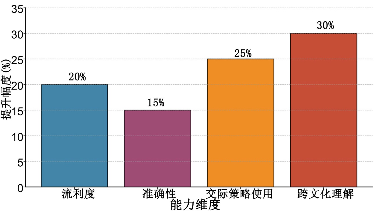 学生在流利度与准确性这两个关键维度的平均得分均展现出了显著的提高(表1)。具体而言,流利度方面的提升幅度达到了20%,这意味着学生们在表达过程中更加流畅自如,停顿、重复等现象明显减少;而准确性方面的提升幅度则为15%,表明学生在语言使用的正确性上,如语法、词汇搭配等方面有了更好的把握,错误率有所降低。