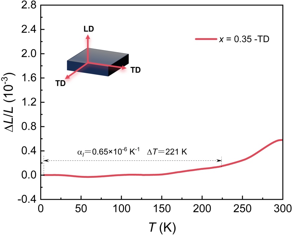 0.35合金表现出宽温域的零热膨胀行为,其线性热膨胀系数低至0.65×10